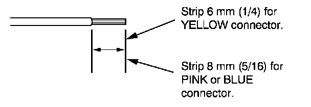 7. If you are using a yellow splice connector, strip about 6 mm (1/4 inch) of insulation off the ends of both wires. If you are using a pink or blue splice connector, strip off about 8 mm (5/16 inch) of insulation.