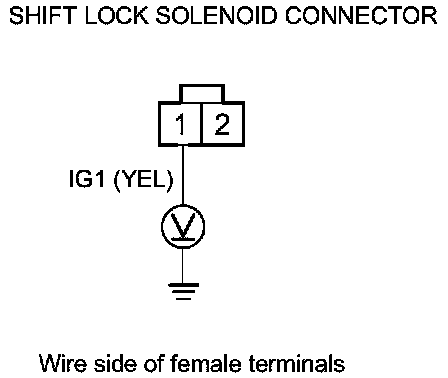 8. Measure the voltage between shift lock solenoid connector terminal No. 1 and body ground.