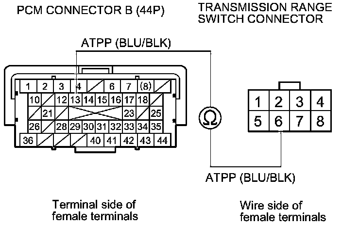 Repair an open in the wire between PCM connector terminal B13 and the transmission range switch.�