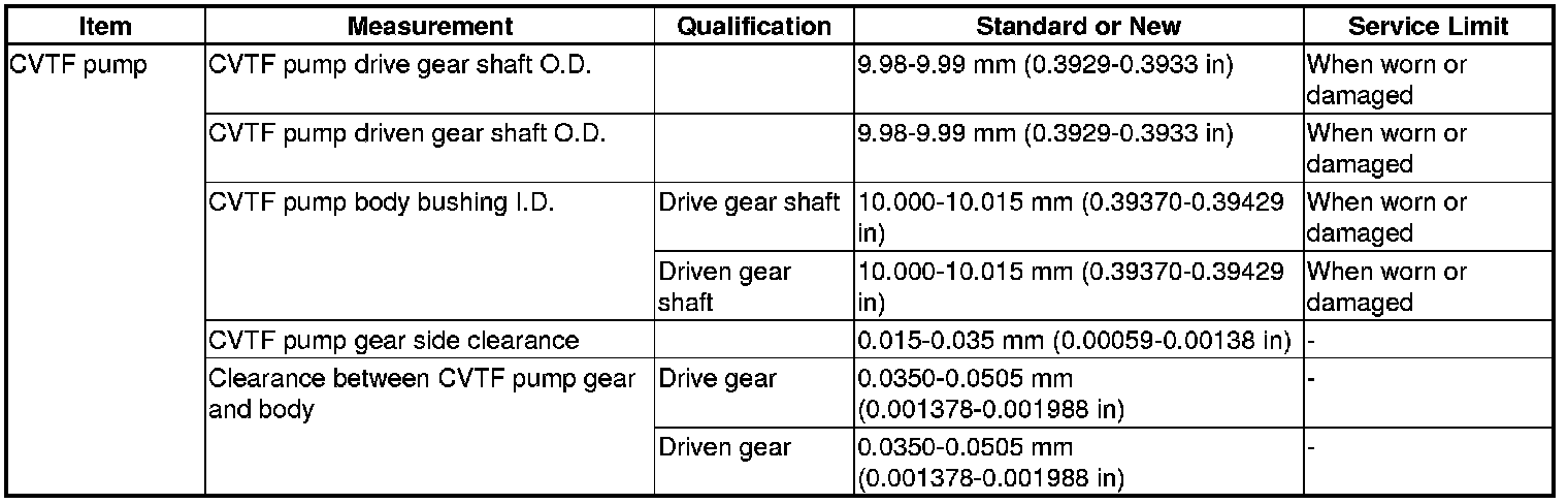 CVTF Pump Specification(s)