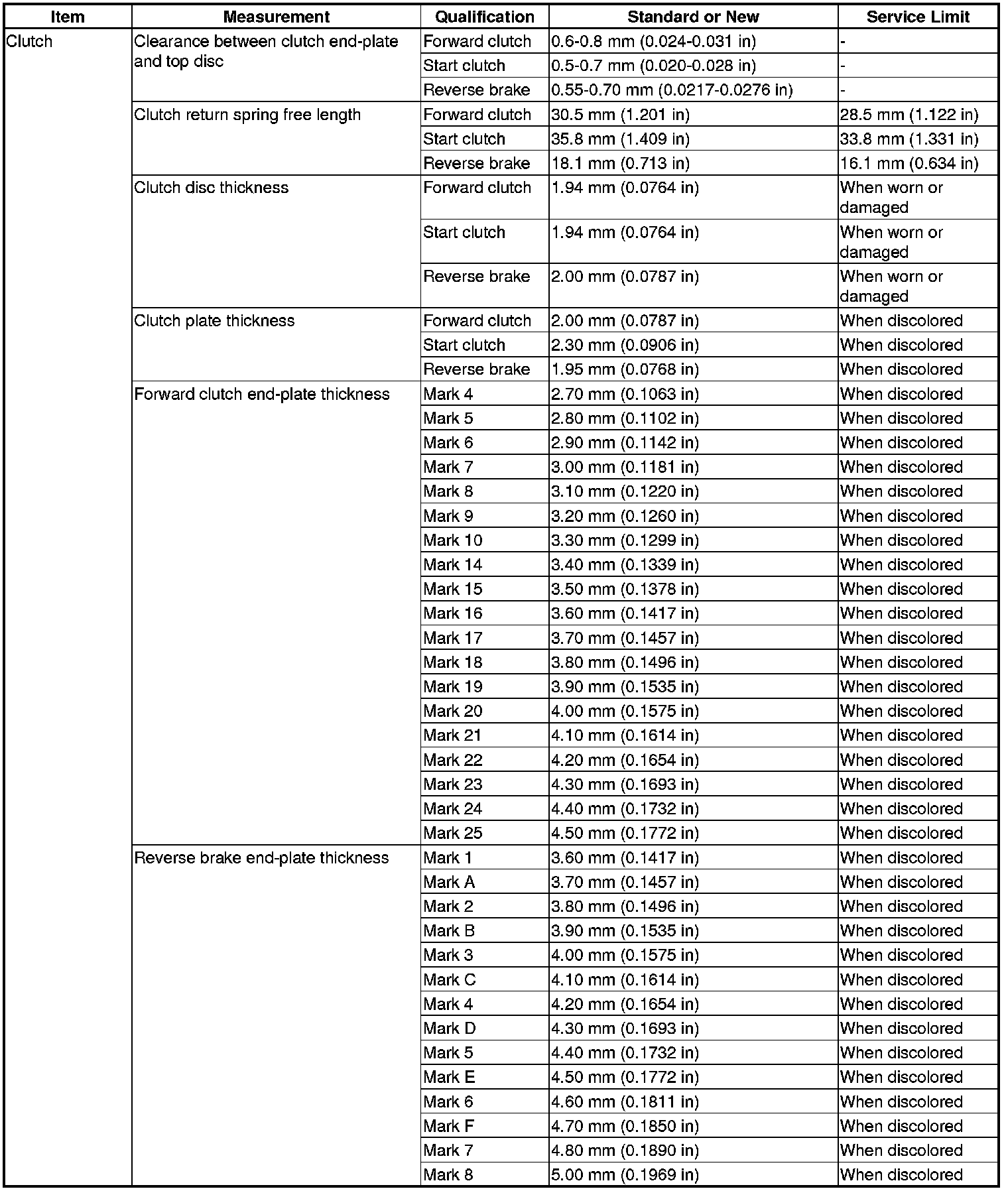 Clutch Specification(s)