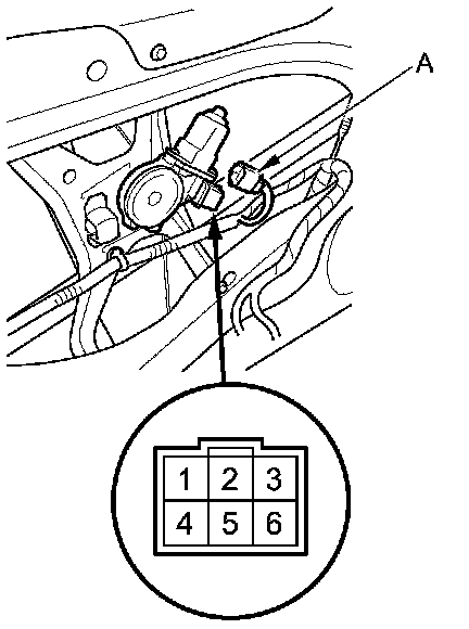 2. Disconnect the 6P connector (A) from the driver's power window motor.