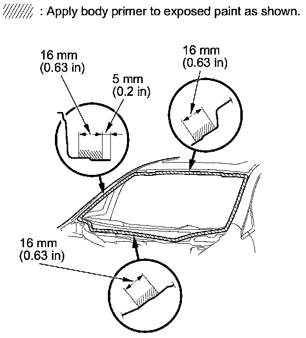 - Never touch the primed surfaces with your hands. If you do, the adhesive may not bond to the windshield properly, causing a leak after the windshield is installed.