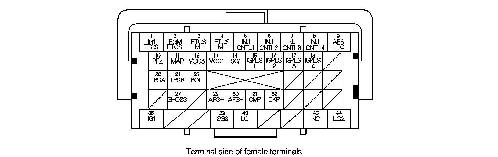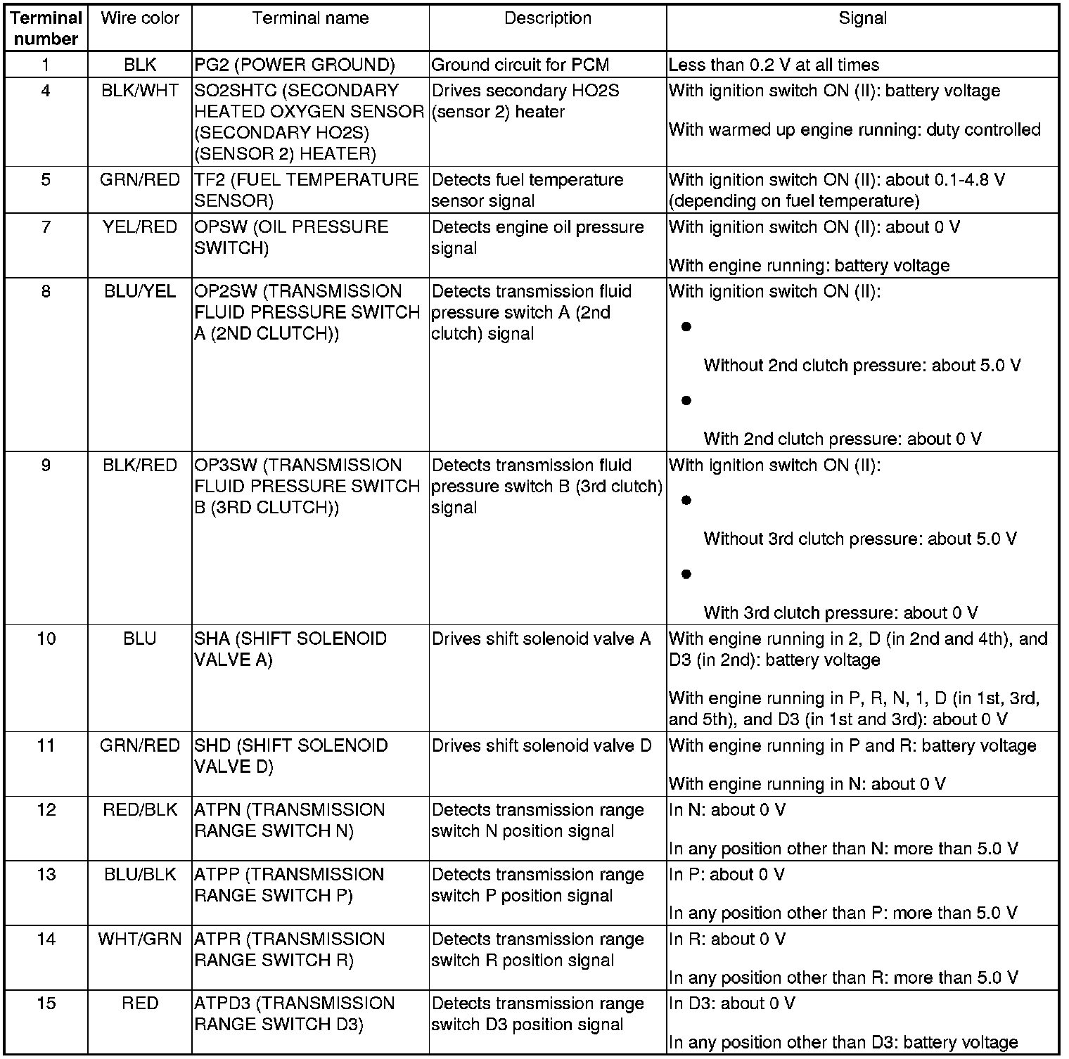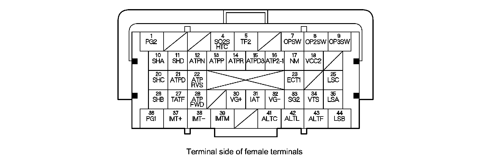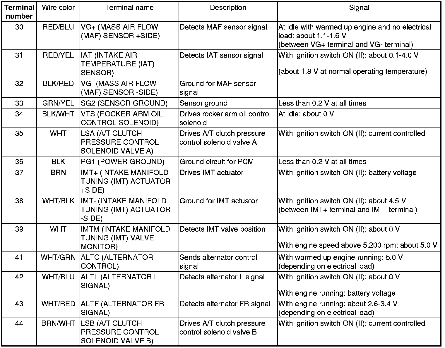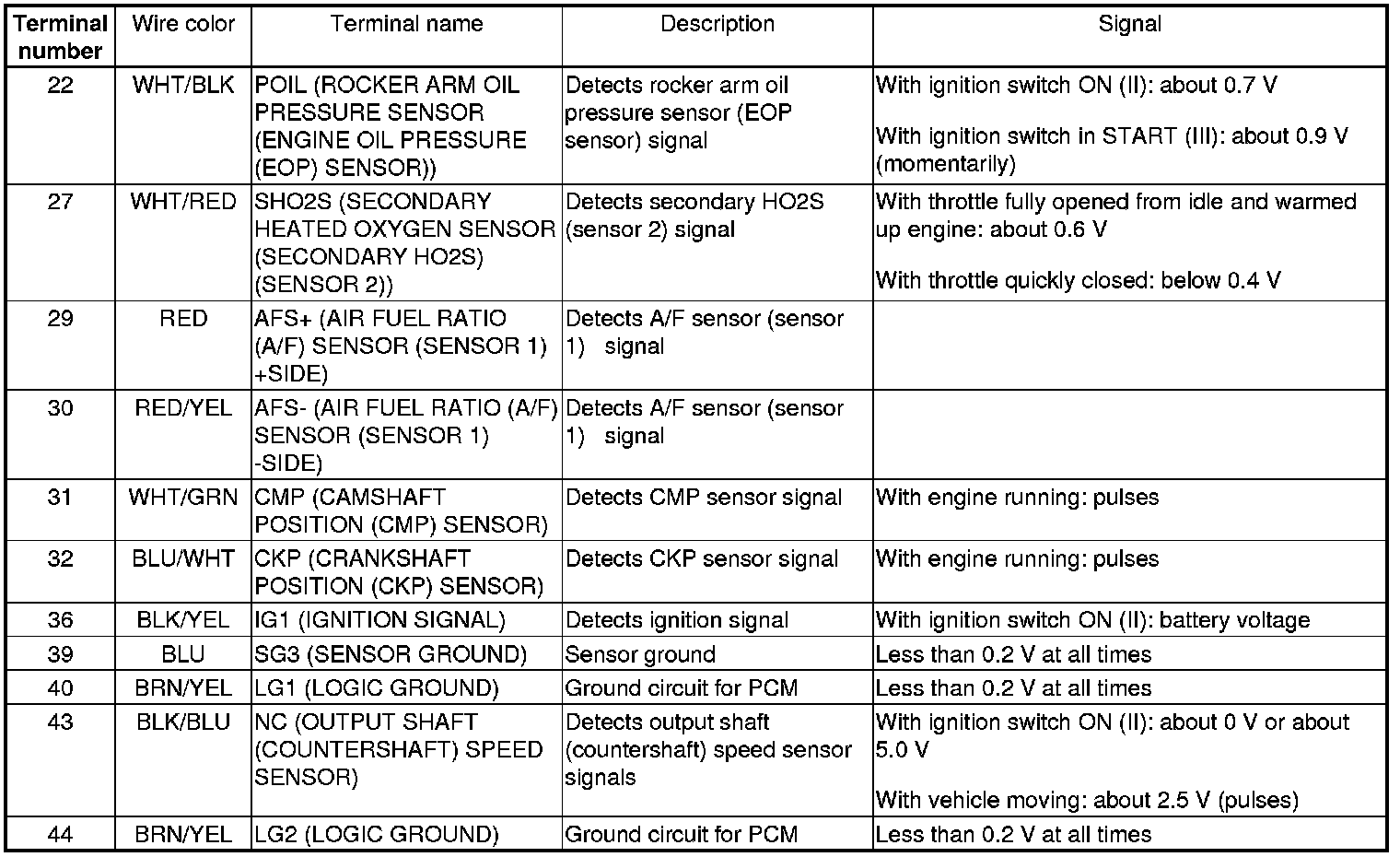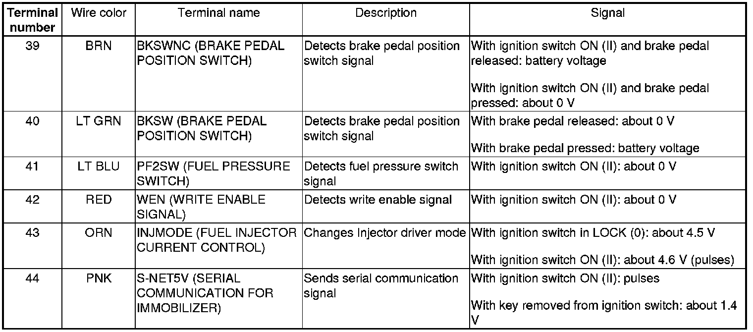 PCM Inputs and Outputs at PCM Connector A (square) (44P)