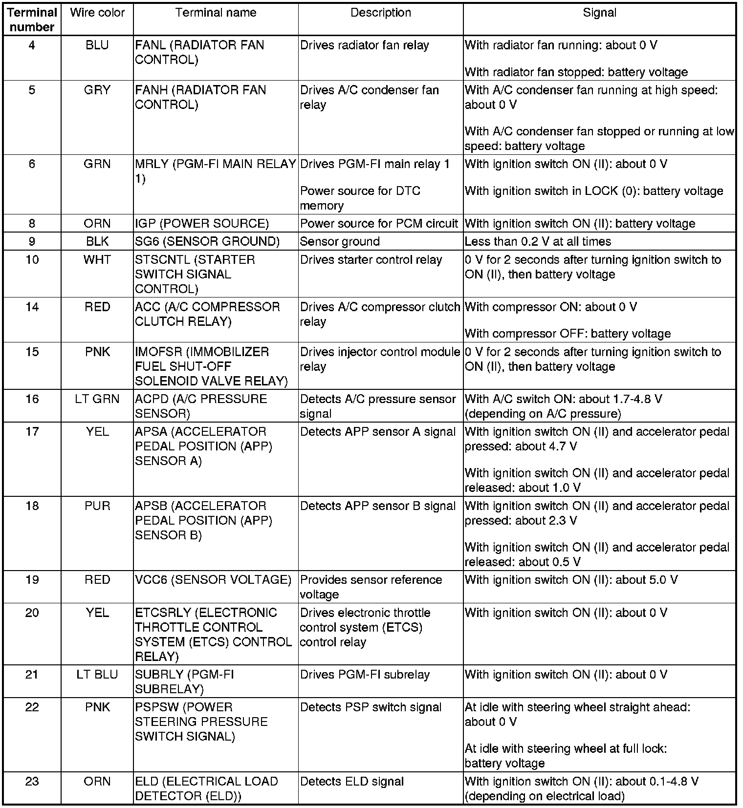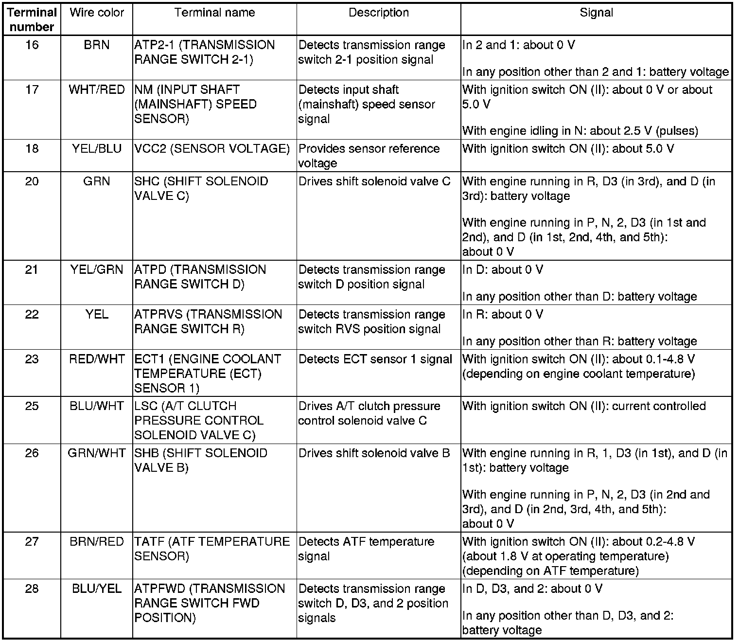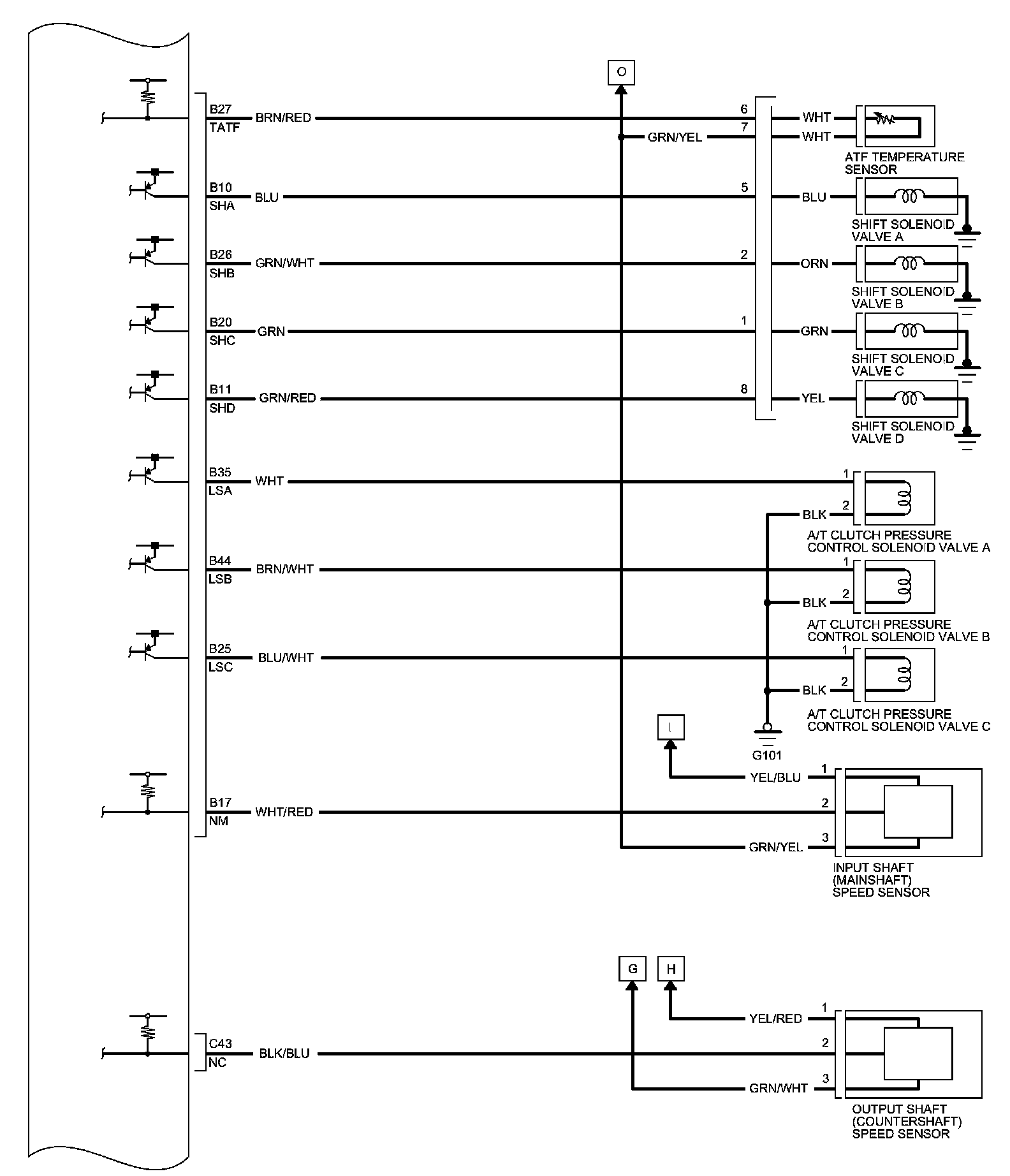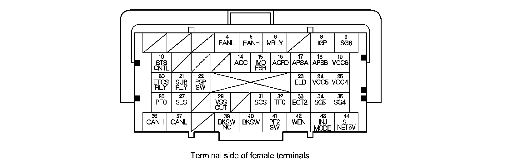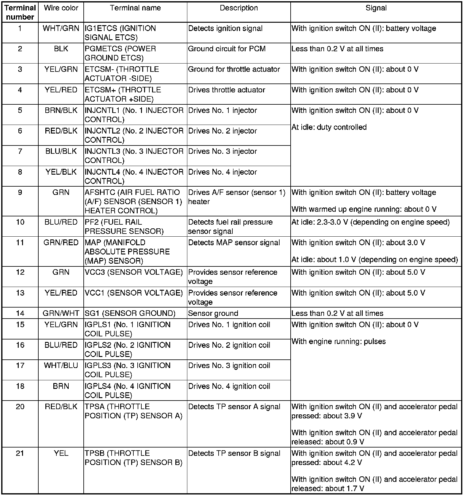 PCM Inputs and Outputs at PCM Connector A (square) (44P)