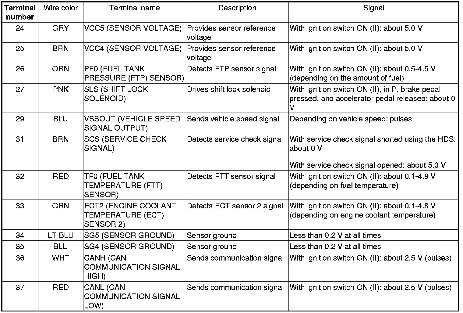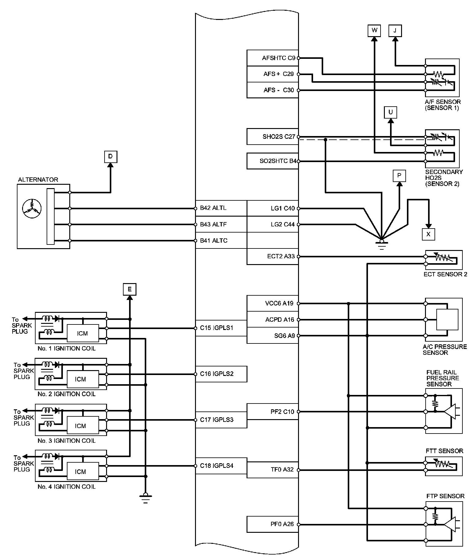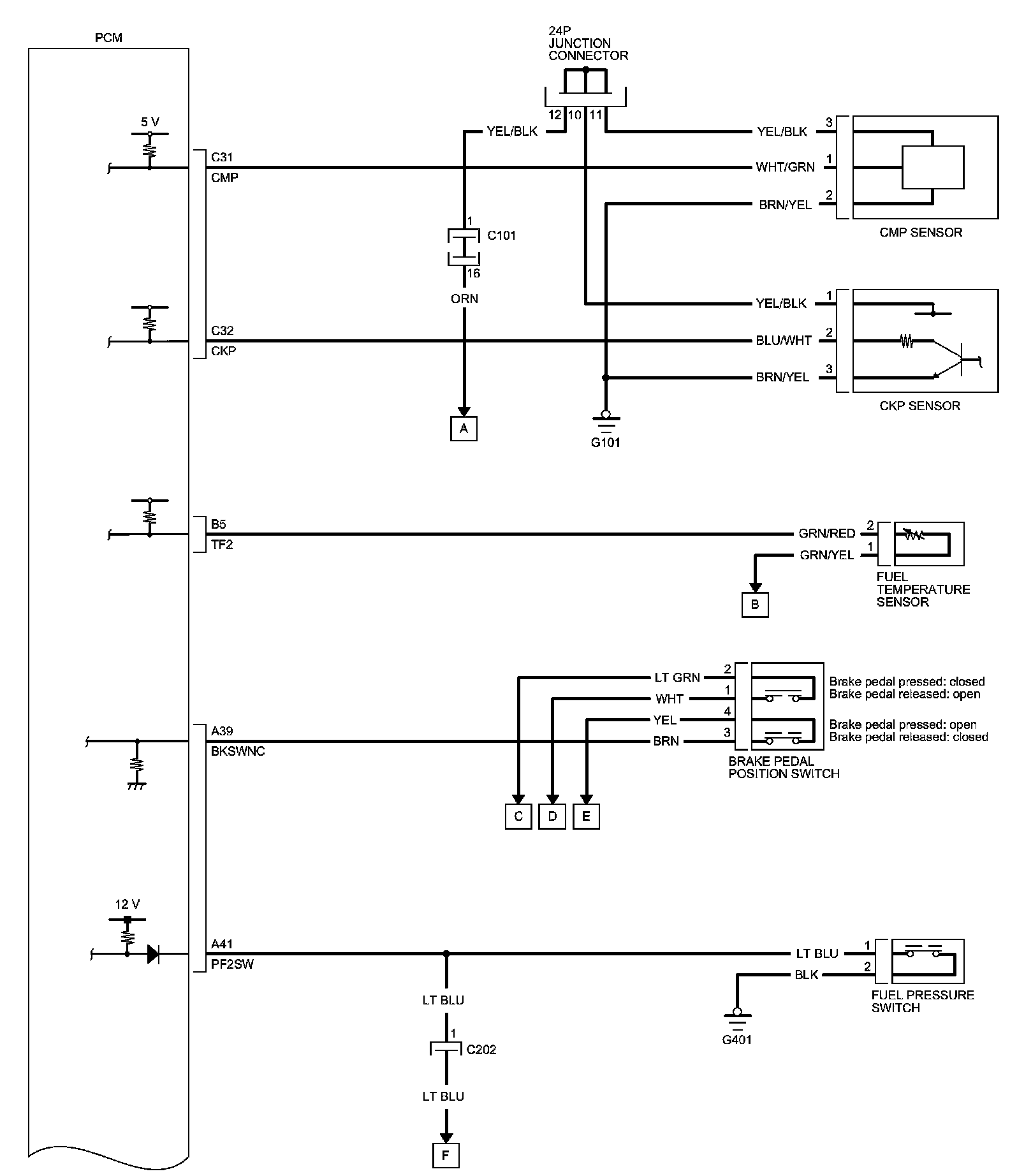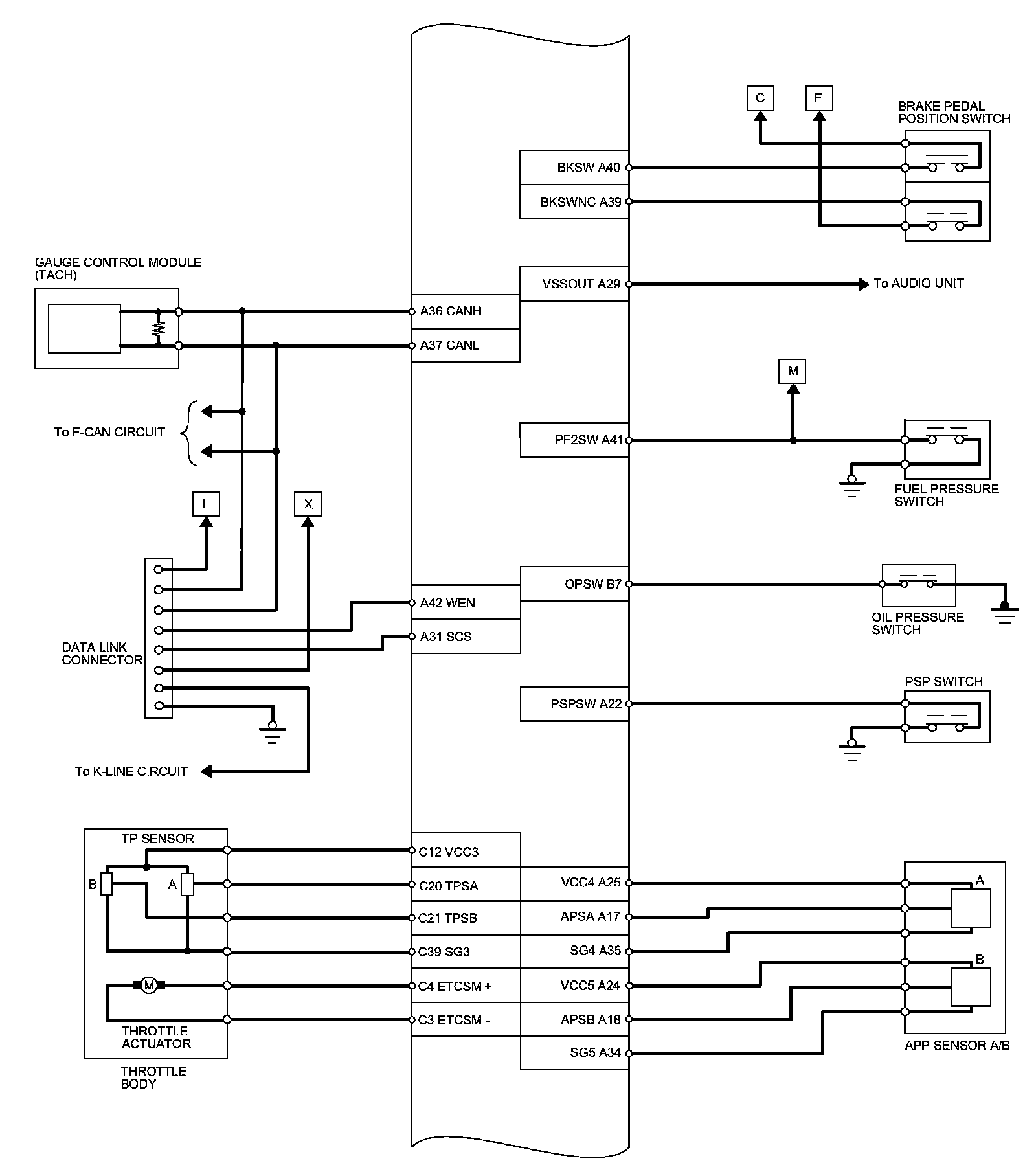 PCM Inputs and Outputs at PCM Connector C (circle) (44P)