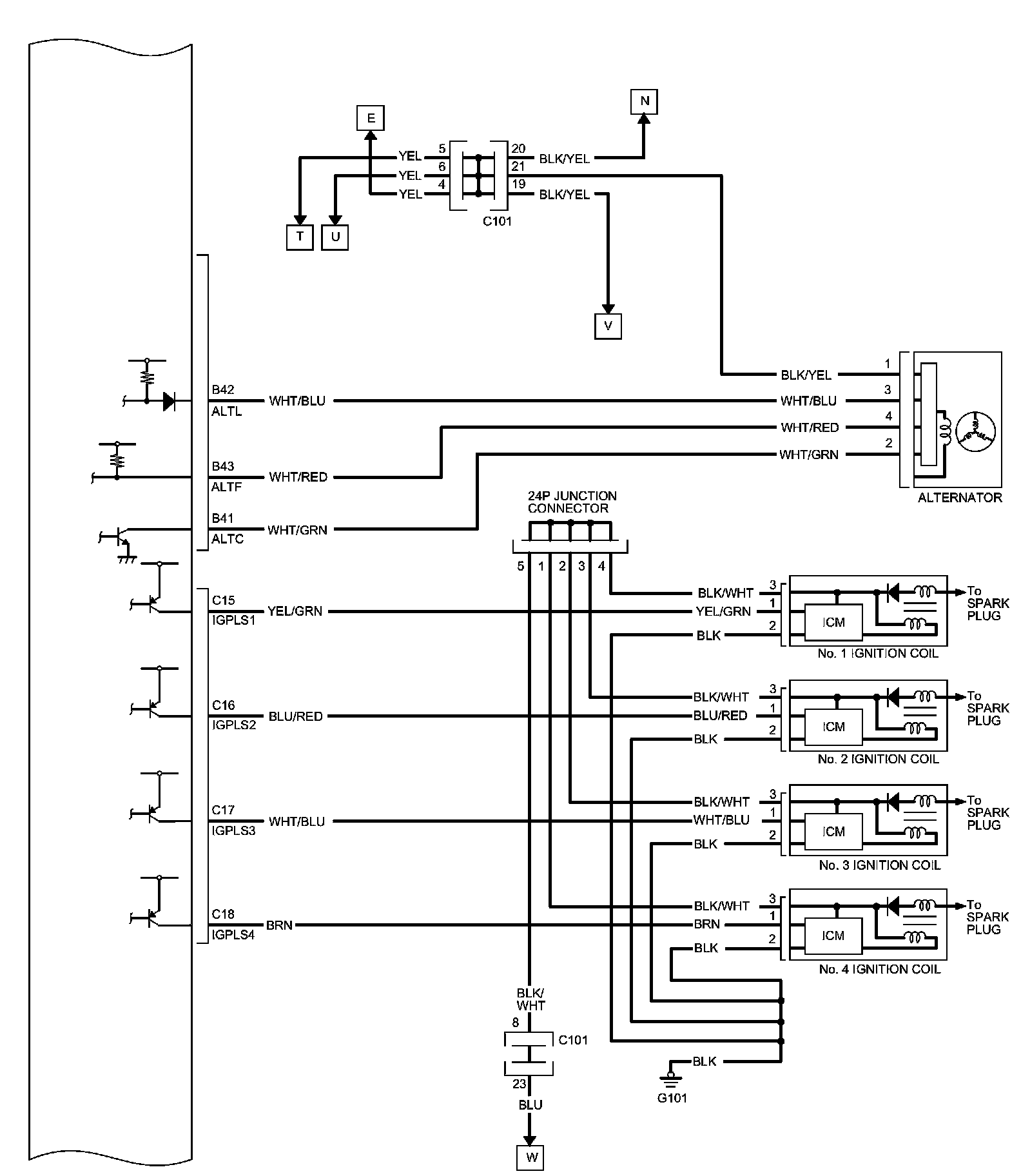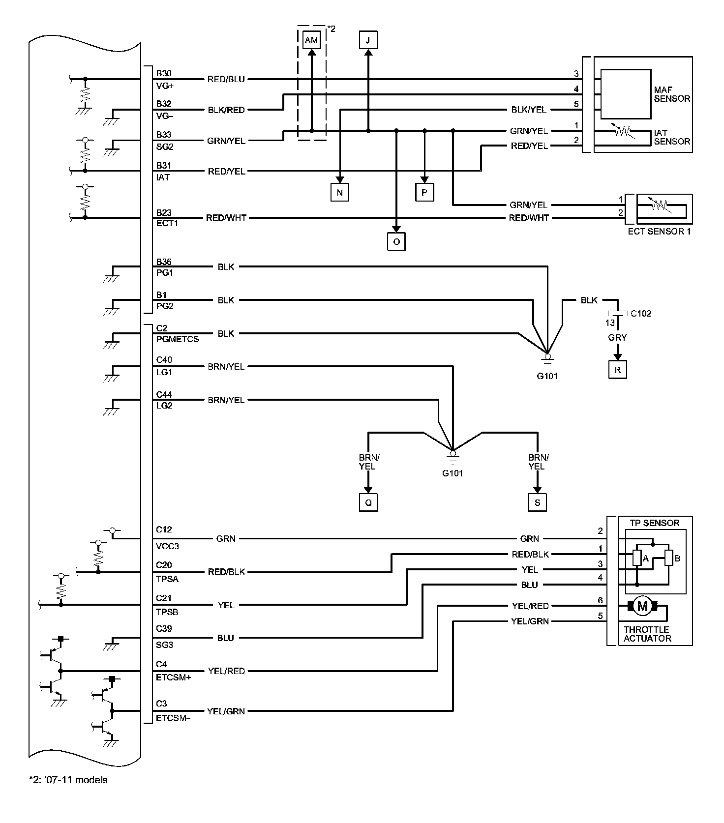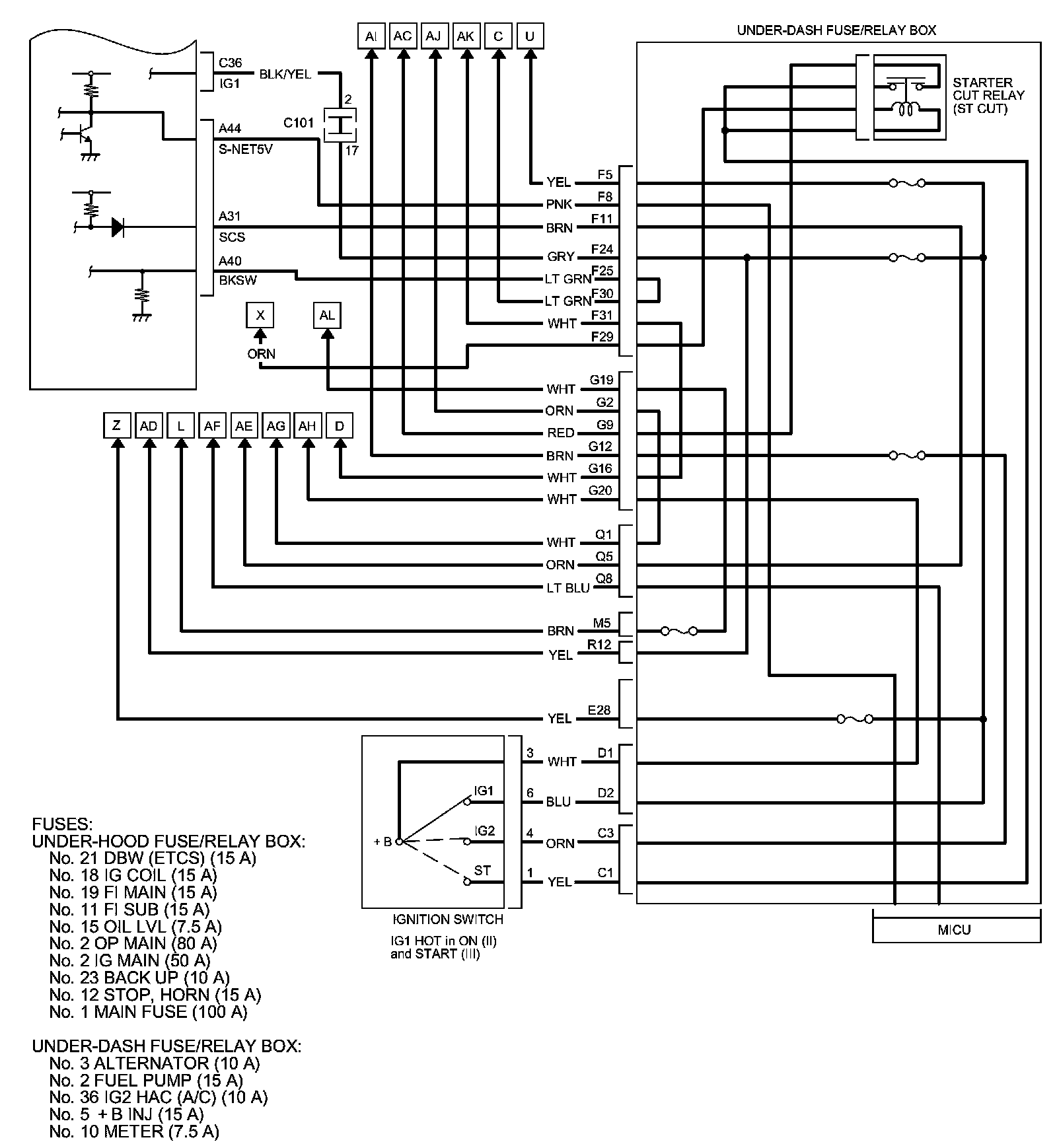 PCM Inputs and Outputs at PCM Connector C (circle) (44P)