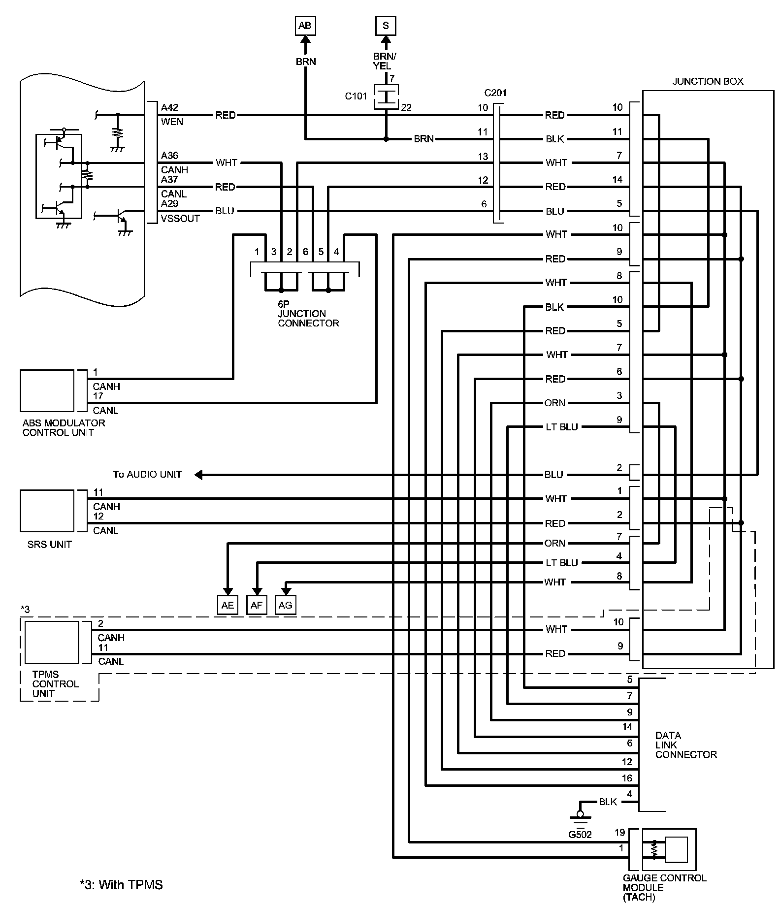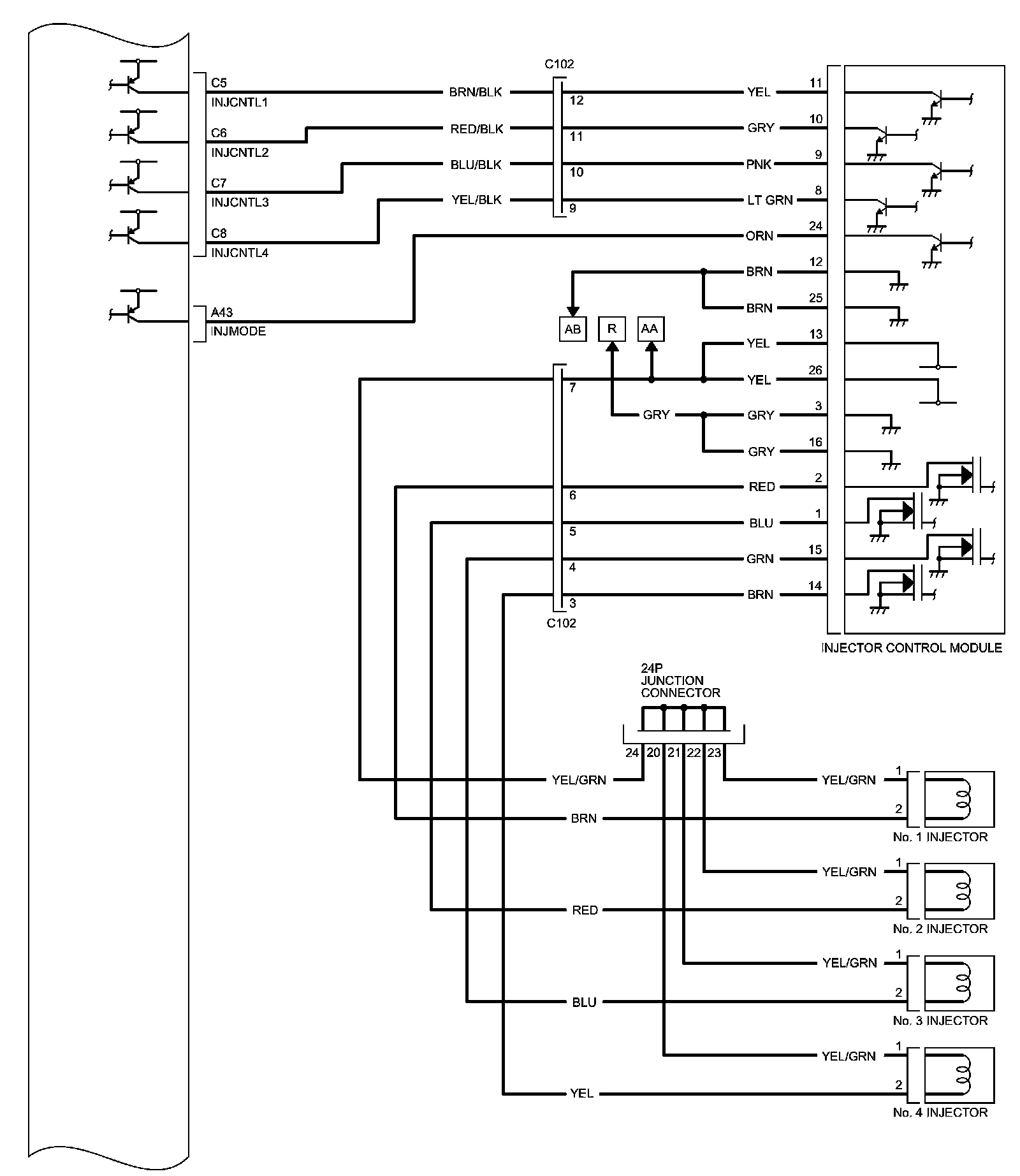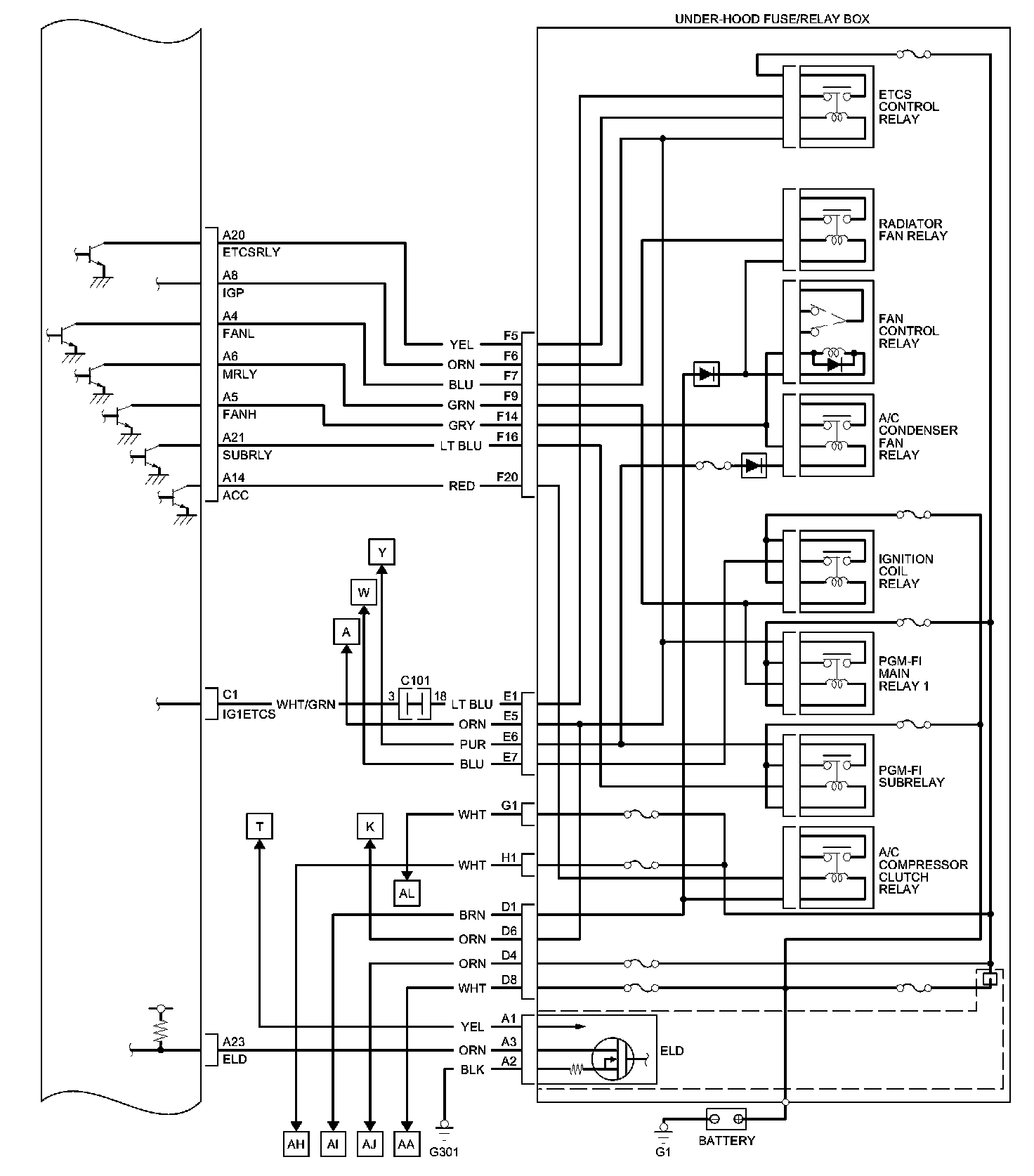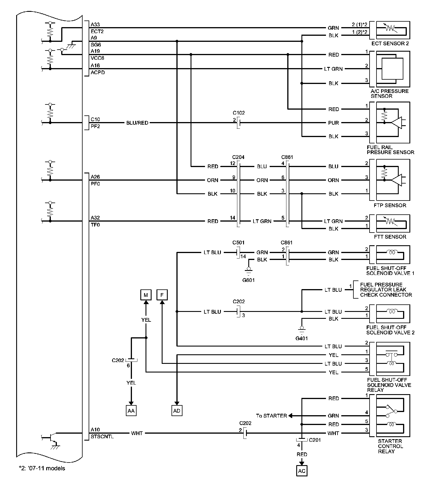 PCM Inputs and Outputs at PCM Connector C (circle) (44P)