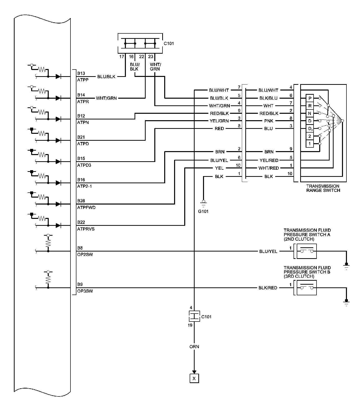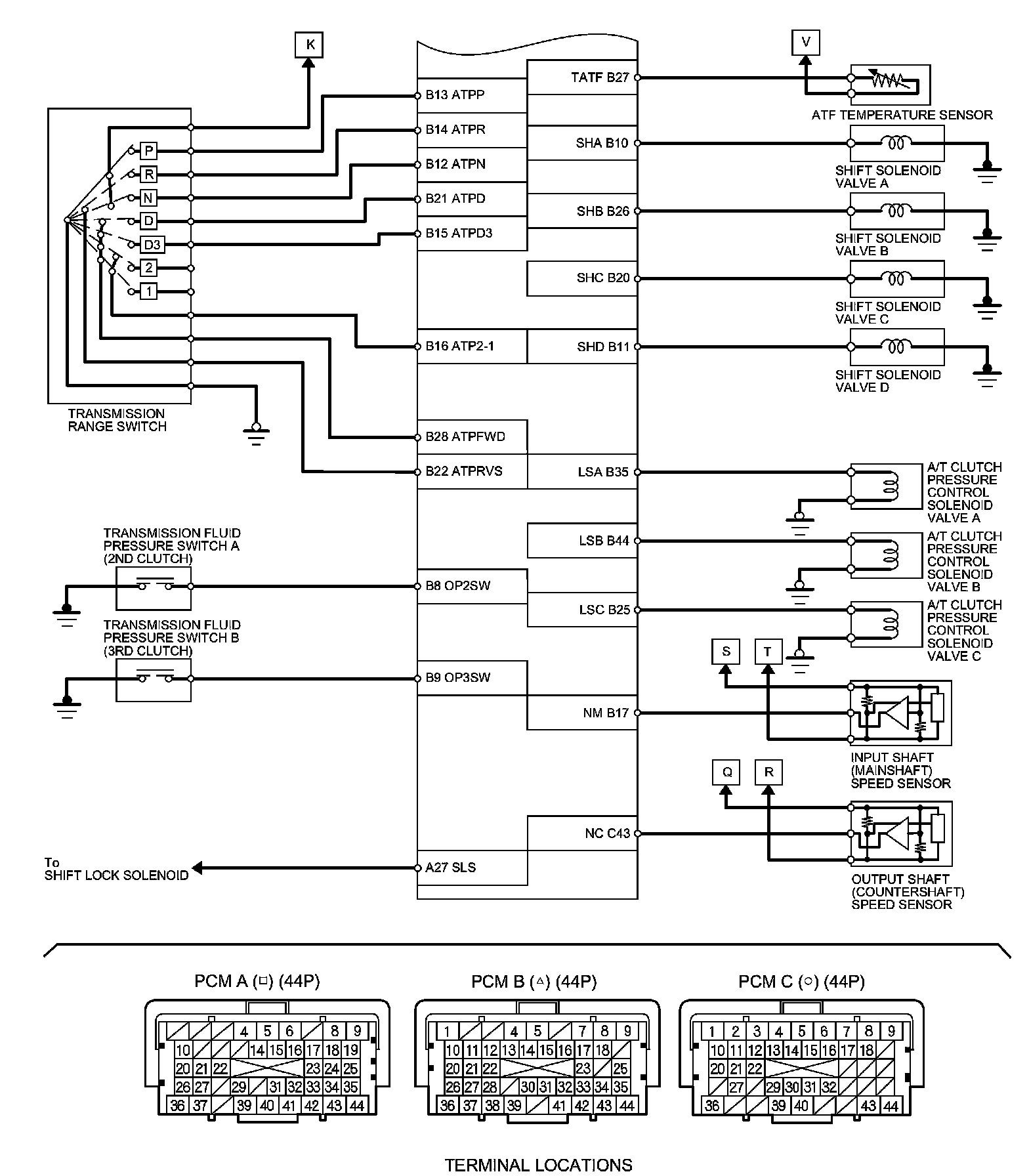 PCM Inputs and Outputs at PCM Connector B (triangle) (44P)