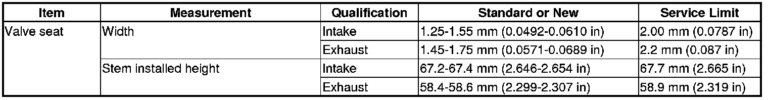 Valve Seat Specification(s)