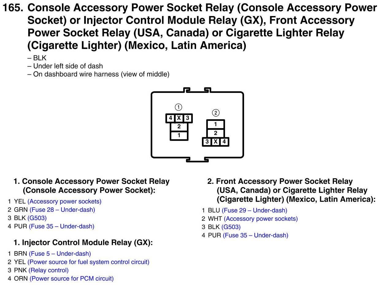 Console Accessory Power Socket Relay (Console accessory Power Socket) or Injector Module Relay(GX), Front Accessory Power Socket Relay (USA, Canada) or