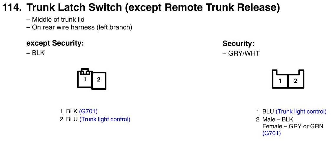 Trunk Latch Switch Connector View (except Remote Trunk Release)