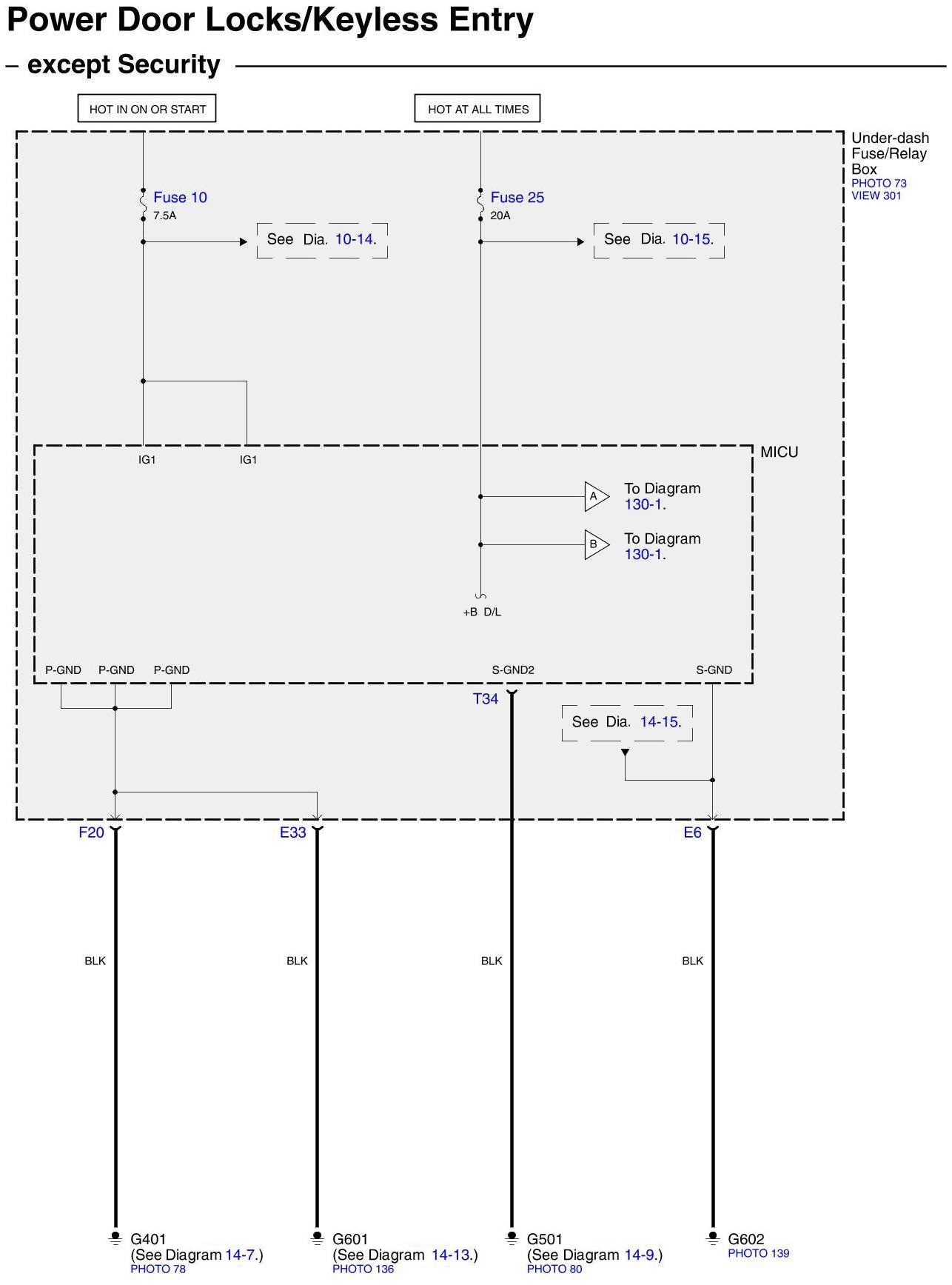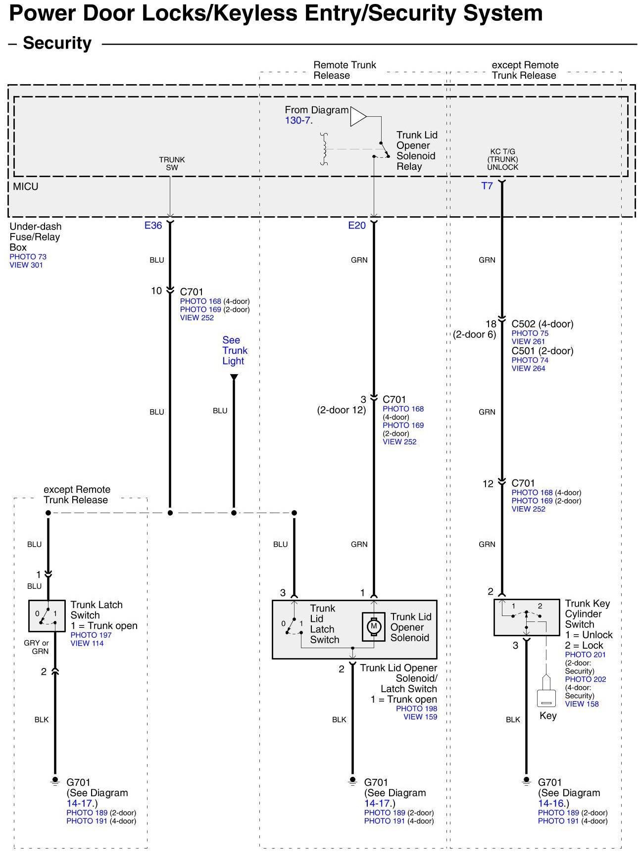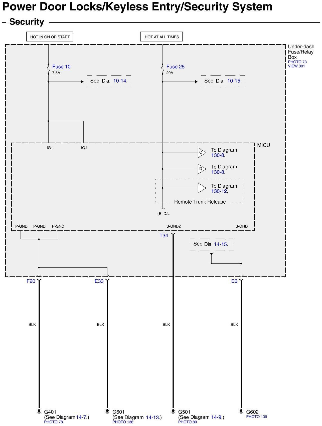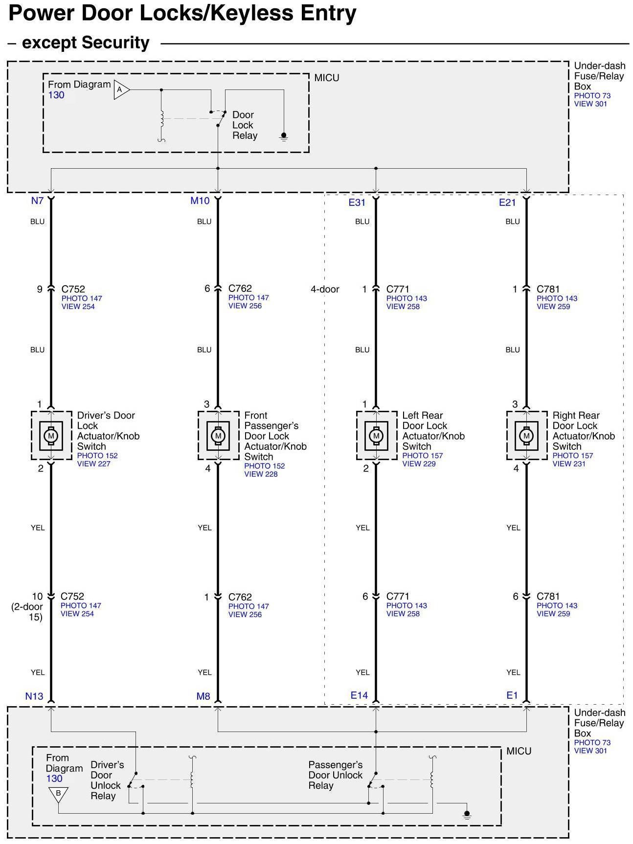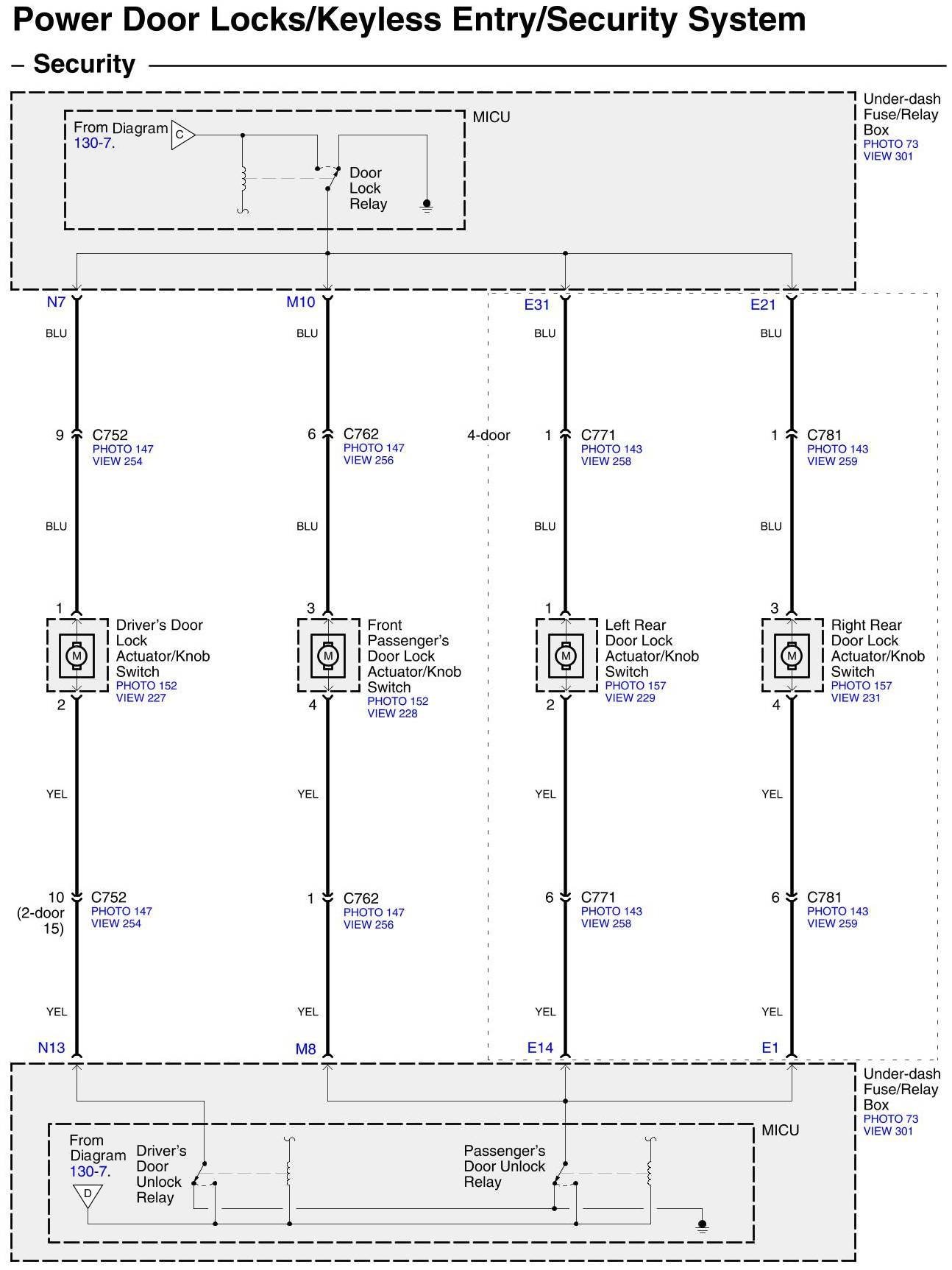 Diagram Set 130 (Power Door Locks/Keyless Entry/Security System)