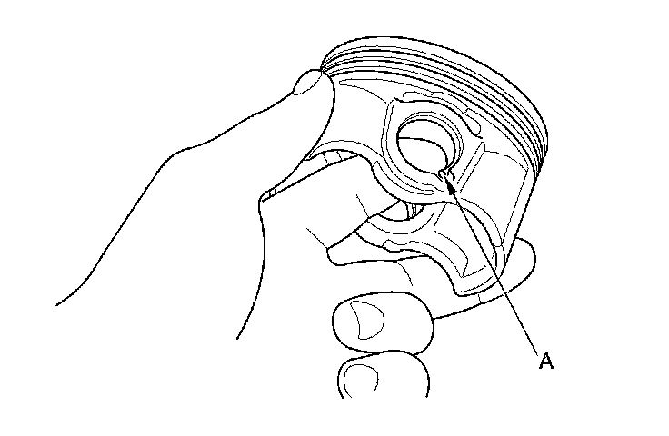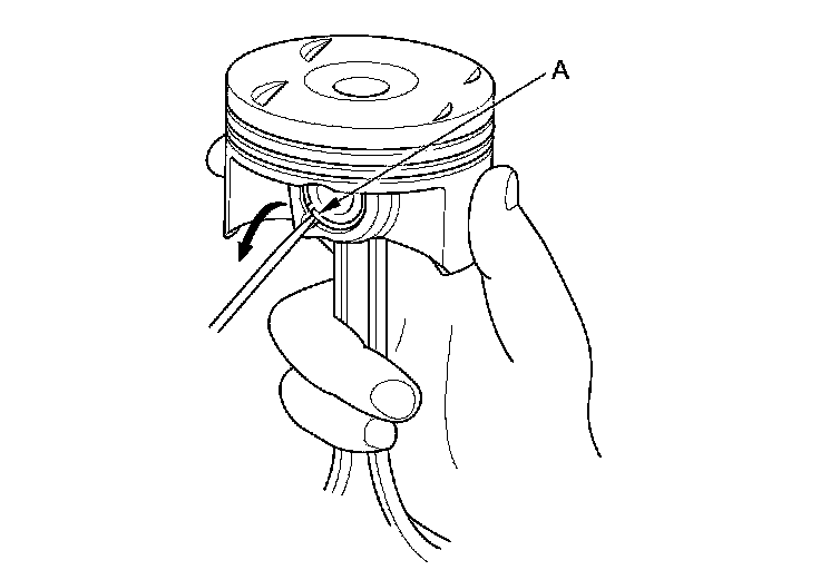 1. Install a piston pin snap ring (A) only on one side.