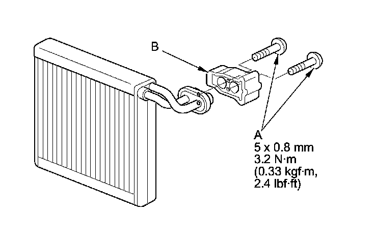2. Remove the bolts (A) and expansion valve (B).