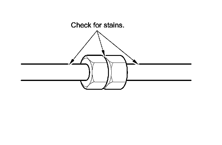 3. Inspect the A/C components, the pressure lines, and the hoses for stains that may indicate a refrigerant or an A/C compressor oil leak. If there is any indication of leaks, do the refrigerant leak check A/C Refrigerant Leak Check to confirm the leak(s).