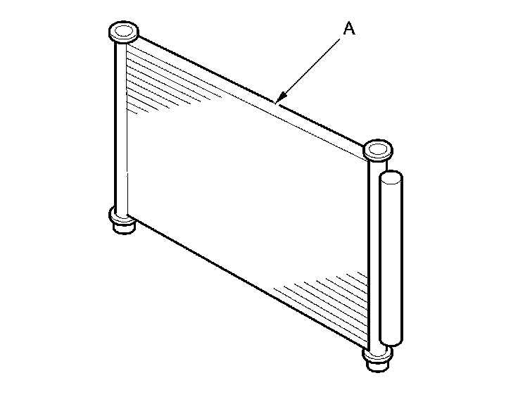 6. Check the A/C condenser for fin damage (bent fins). If any of the A/C condenser fins are bent, try to comb them straight. Do the refrigerant leak check A/C Refrigerant Leak Check to check for leaks if there is visible damage to the A/C condenser. If the A/C condenser is leaking or the fins cannot be straightened, replace the A/C condenser Service and Repair.