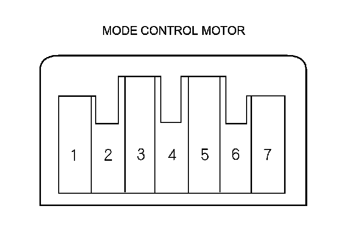 4. Use a digital multimeter with an output of 1 mA or less at the 20 kOhms range. With the mode control motor running as in step 2, check for continuity between terminals No. 3, No. 4, No. 5, and No. 6 and terminal No. 7 individually. There should be continuity for a moment at each terminal as the motor moves through its travel.