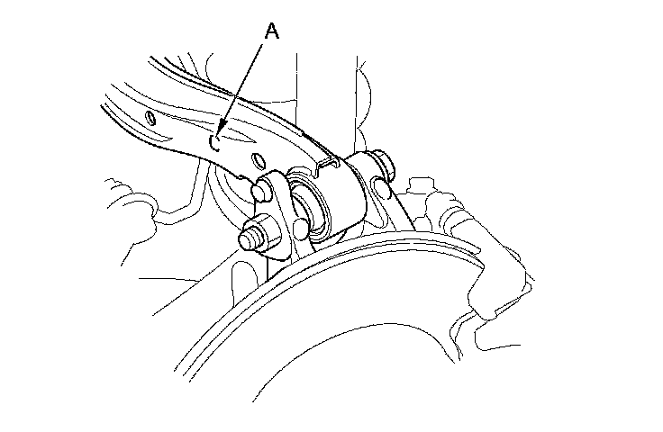 10. Replace the damper pinch bolts with the adjusting bolts (A), and adjust the camber angle.