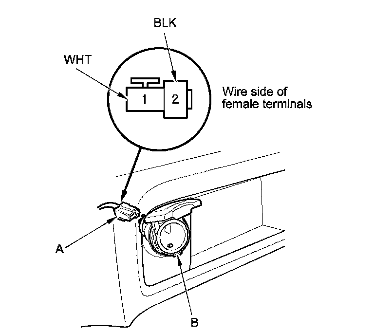 2. Disconnect the 2P connector (A) from the front accessory power socket (B).