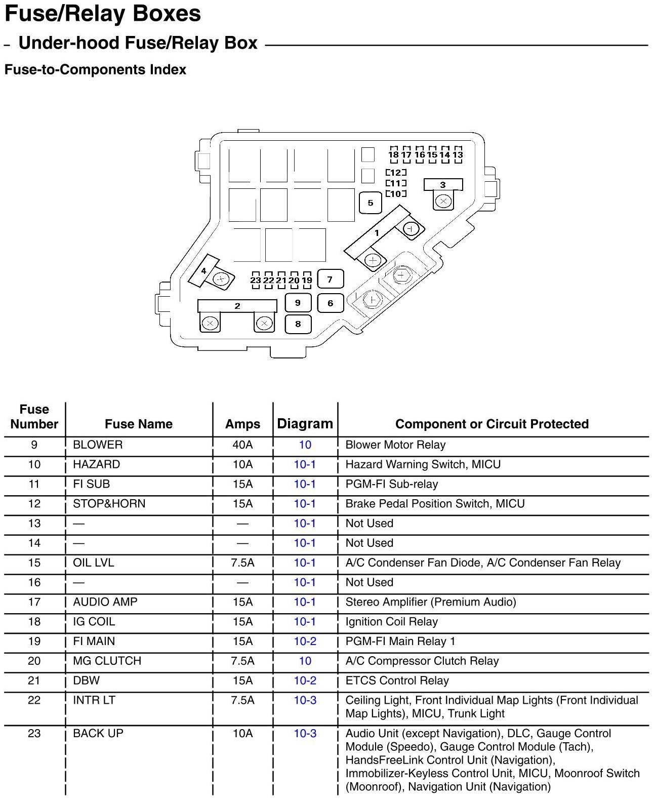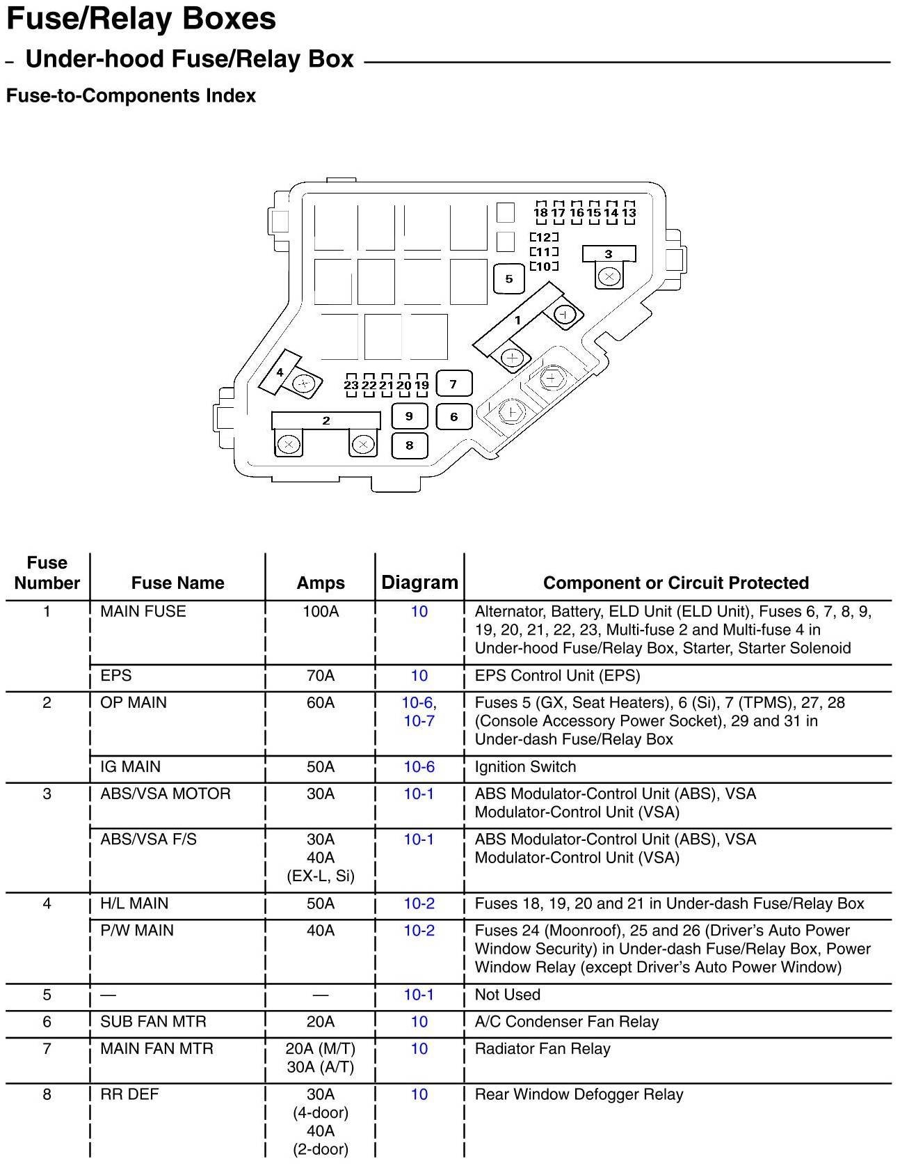 Under-Hood Fuse/Relay Box - Fuse-to-Components Index