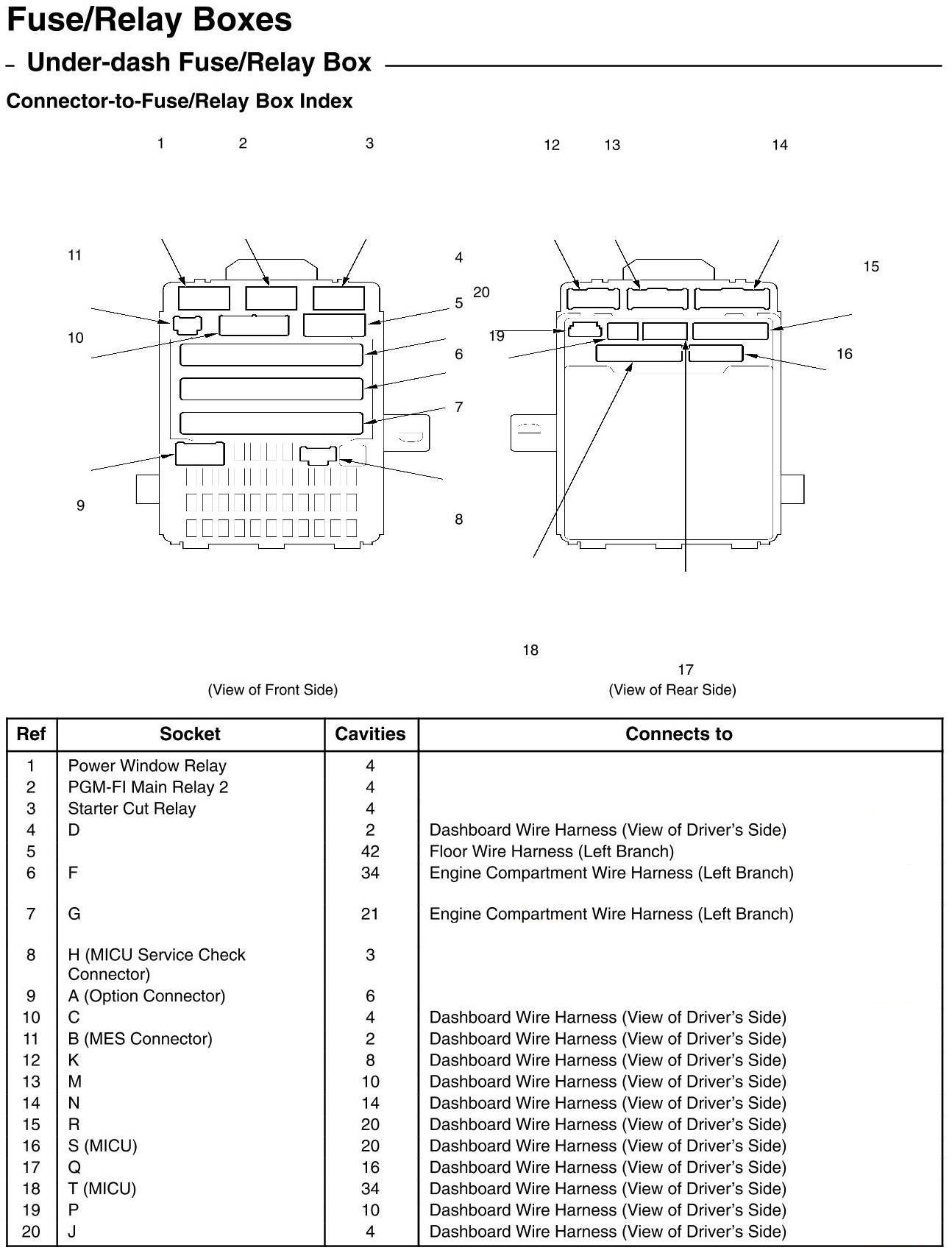 Under-dash Fuse/Relay Box - Connector-to-Fuse/Relay Box Index