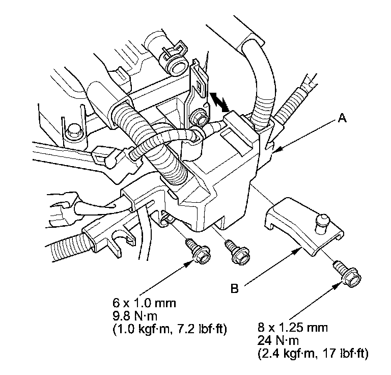 2. Remove the air cleaner bracket (A), then remove the harness holder (B) from the cylinder head.