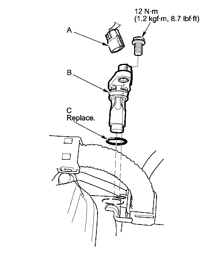 4. Install the parts in the reverse order of removal with a new O-ring (C).