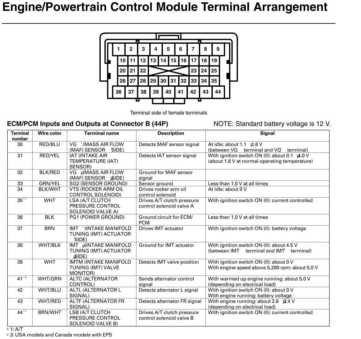 ECM/PCM Inputs And Outputs At Connector B (except Si, GX)
