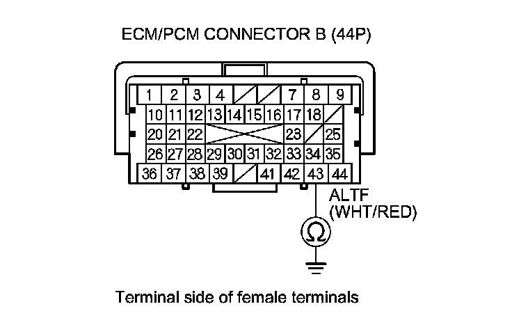 8. Check for continuity between body ground and ECM/PCM connector terminal B43.