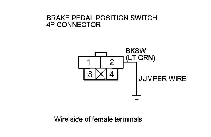9. Connect brake pedal position switch 4P connector terminal No. 2 to body ground with a jumper wire.