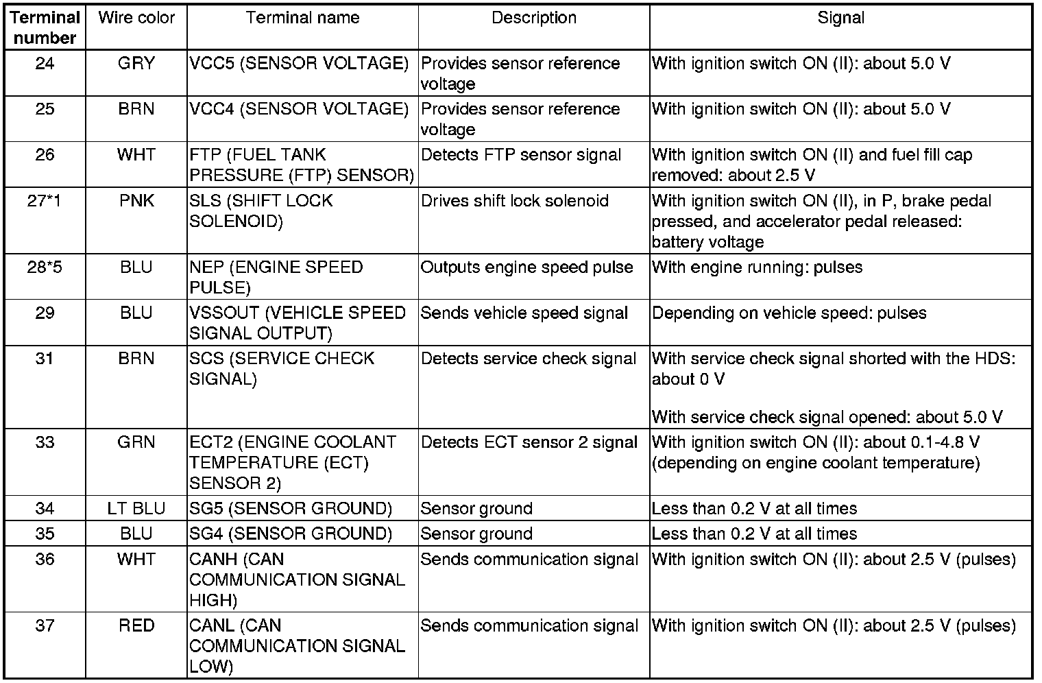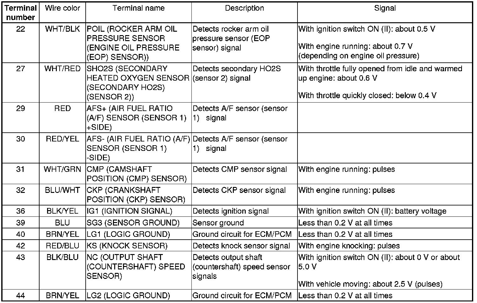 ECM/PCM Inputs and Outputs at ECM/PCM Connector C (circle) (44P)