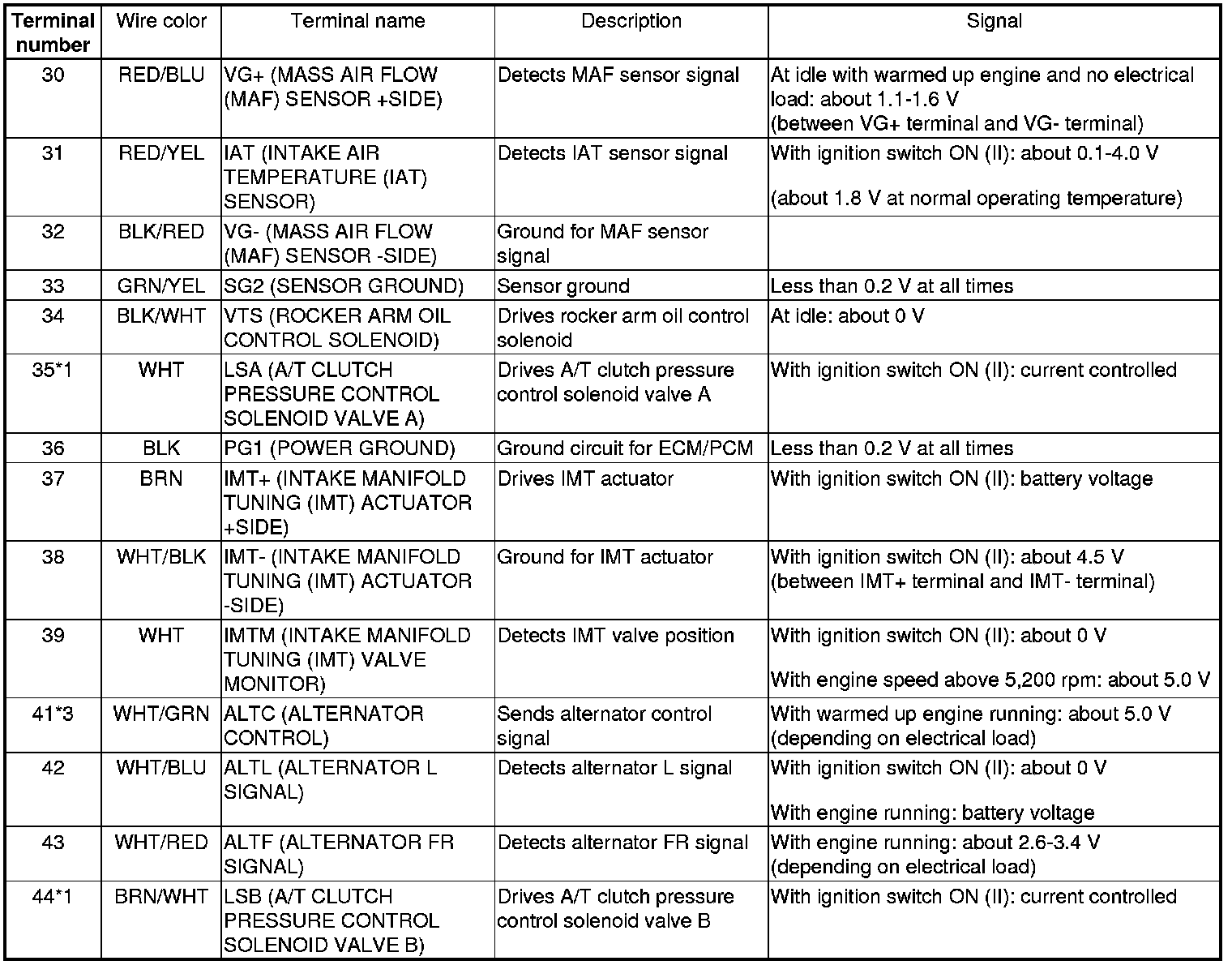 ECM/PCM Inputs and Outputs at ECM/PCM Connector B (triangle) (44P)