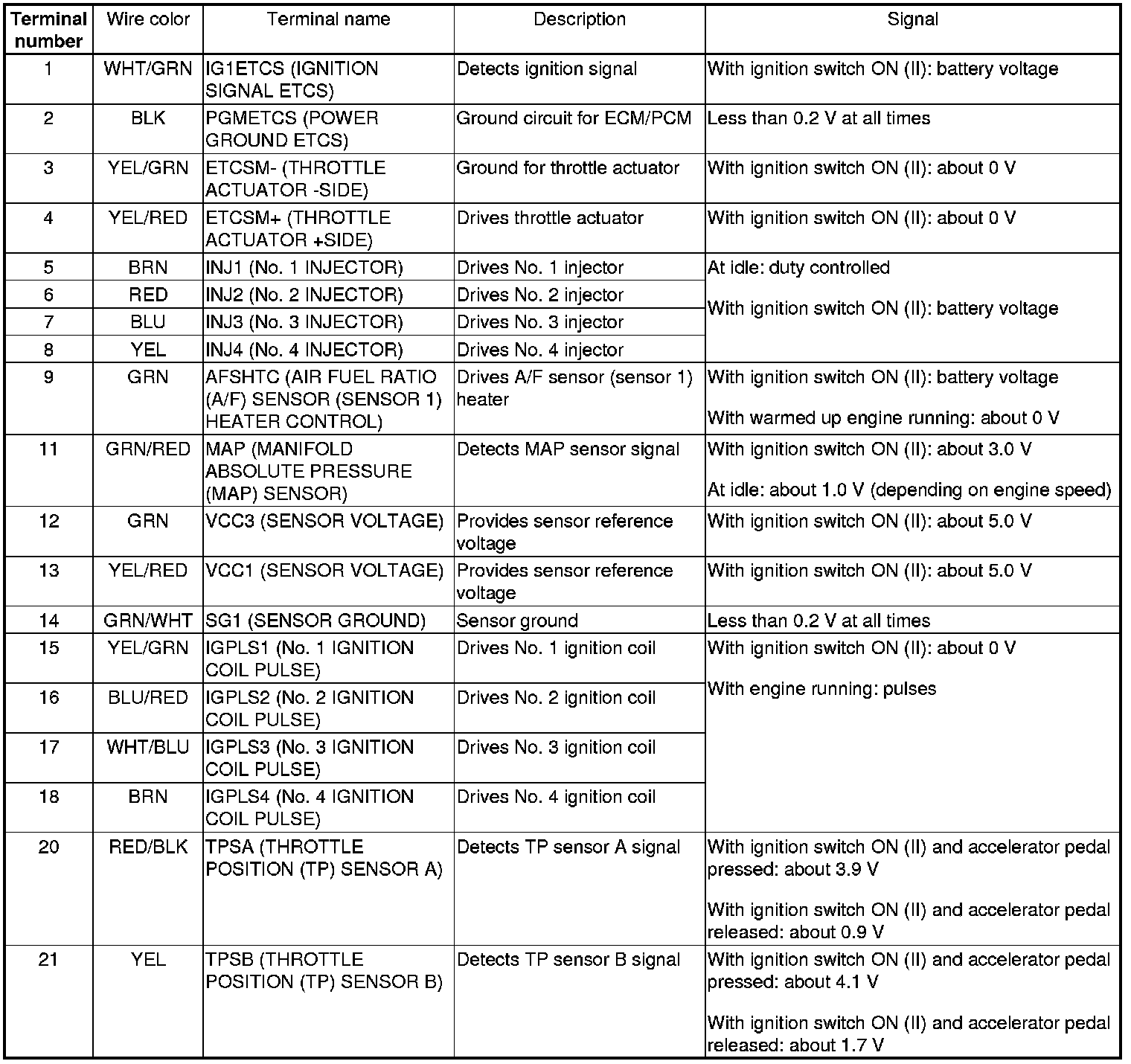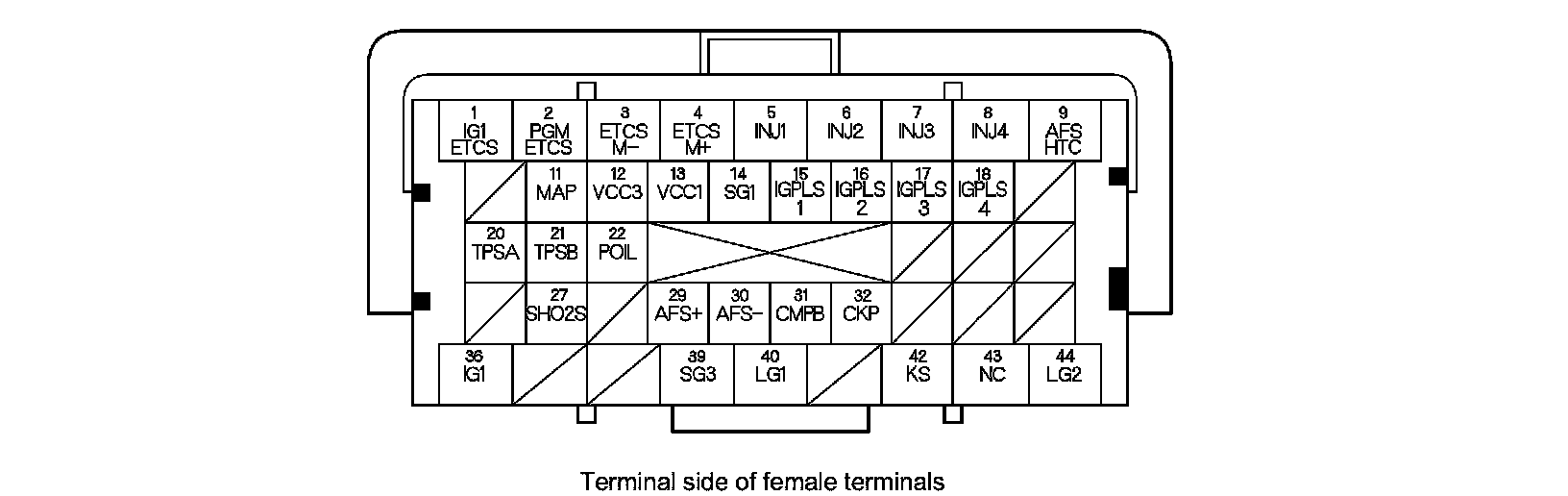 ECM/PCM Inputs and Outputs at ECM/PCM Connector A (square) (44P)