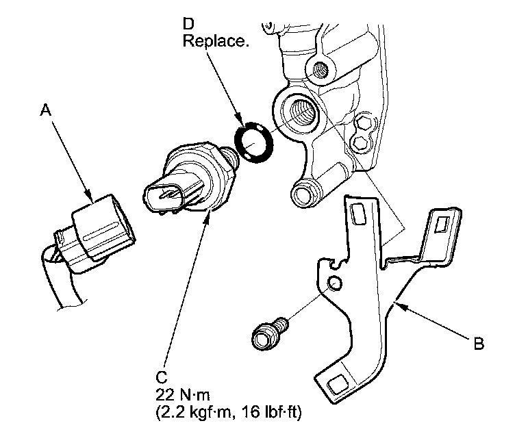 4. Install the parts in the reverse order of removal with a new O-ring (D).
