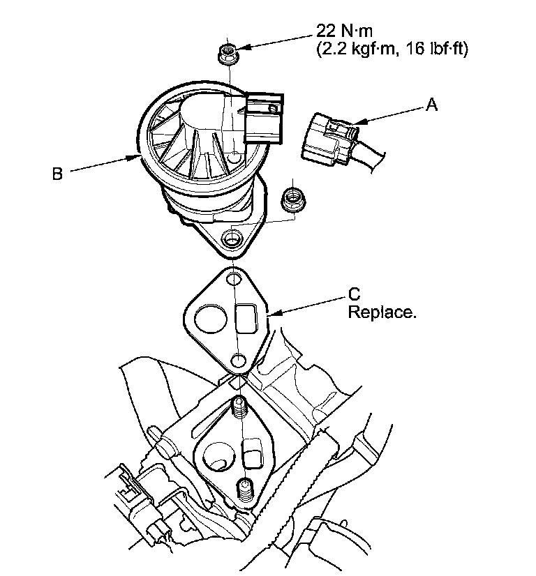 4. Install the parts in the reverse order of removal with a new gasket (C).