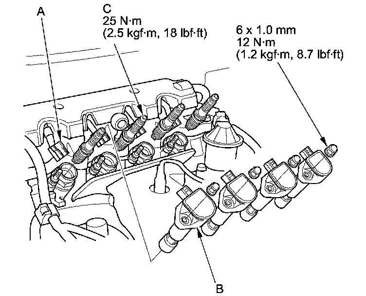 2. Remove the spark plugs (C) and inspect them Testing and Inspection.