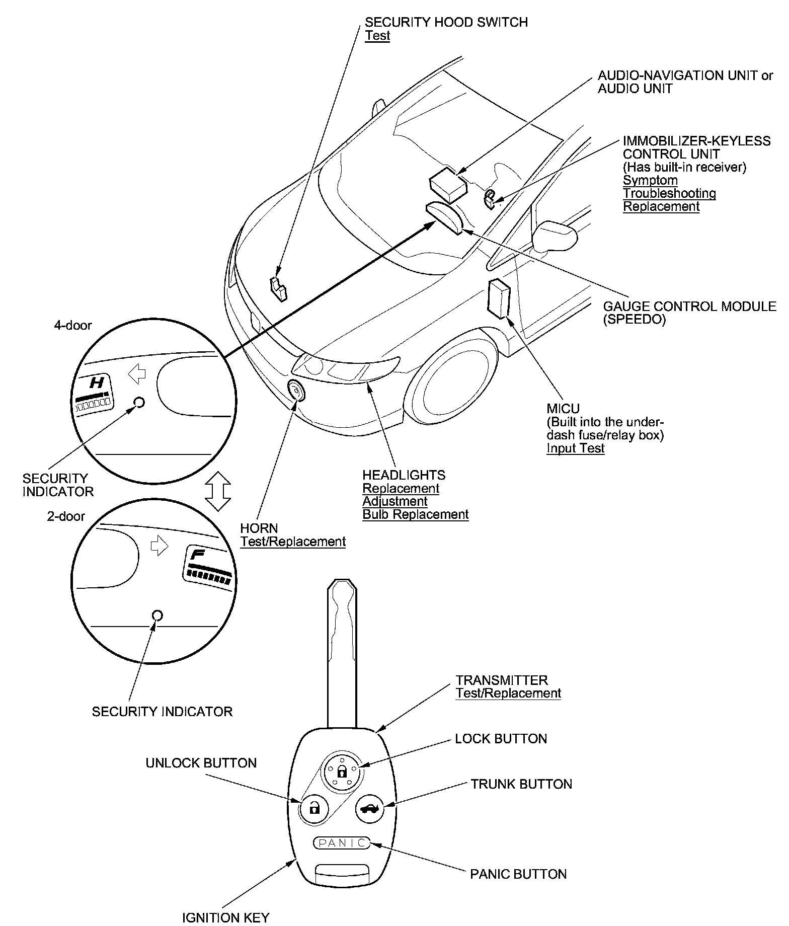 Keyless/Power Door Locks/Security System Component Location Index