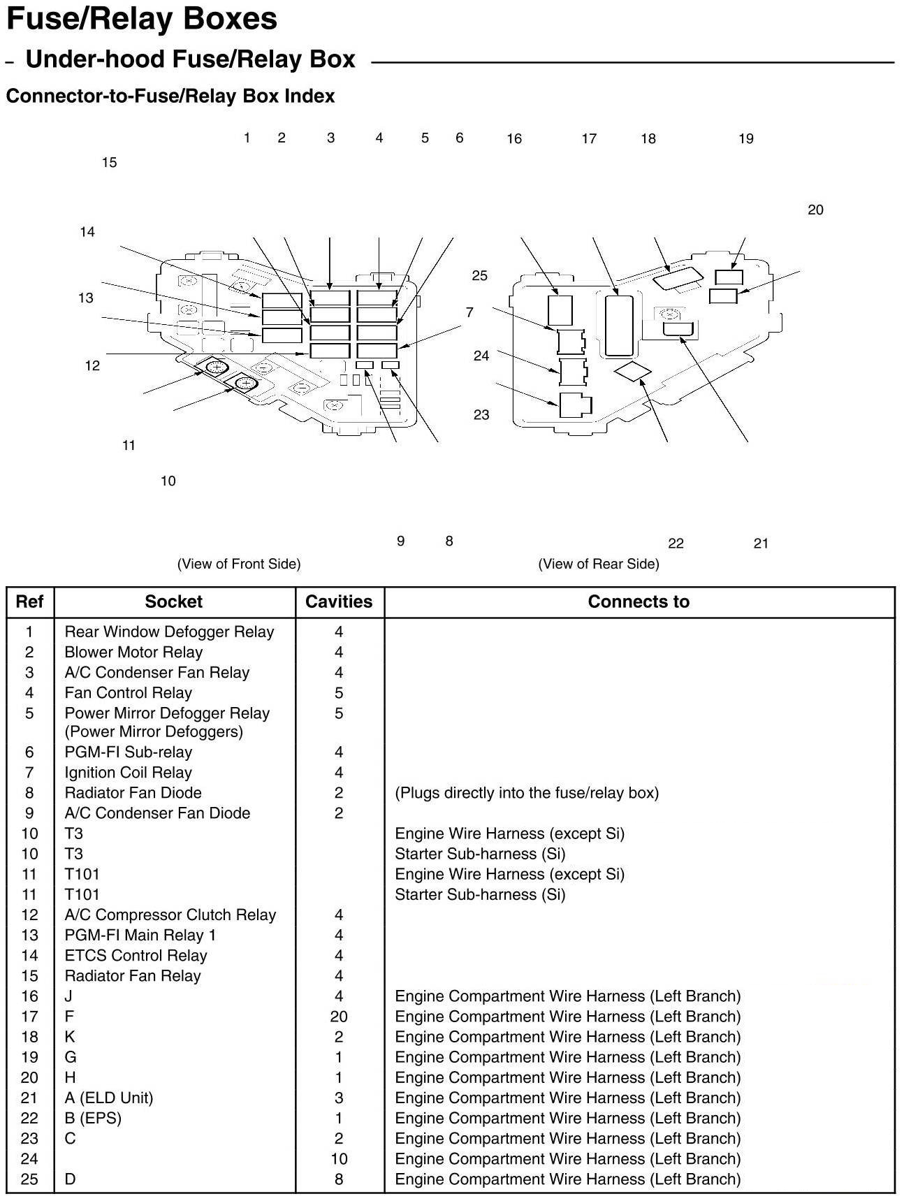 Under-hood Fuse/Relay Box - Connector-to-Fuse/Relay Box Index
