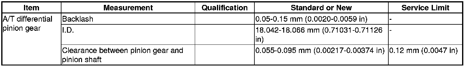 A/T Differential Pinion Gear Specifications