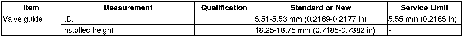 Valve Guide Specification(s)