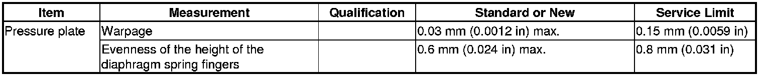 Pressure Plate Specification(s) (M/T)