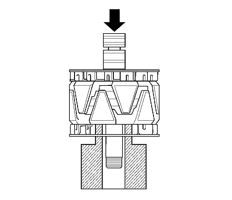 16. Install a new front bearing in the drive-end housing with a hammer, the driver handle, 15 x 135L, and the attachment, 42 x 47 mm.