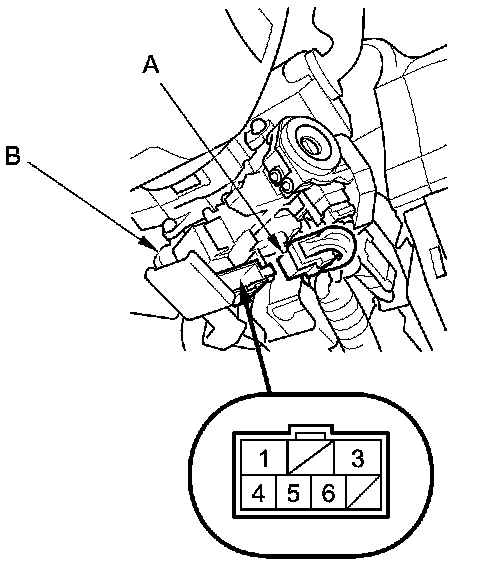 3. Disconnect the 7P connector (A) from the ignition switch (B).