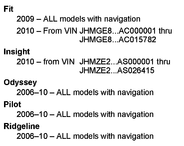 4. Do the update procedure in Service Bulletin 07-026, Navigation Software Updates for Daylight Saving Time (DST), DVD Read Error Message, and Other Listed Symptoms if applicable. Check online, and apply any other navigation patches or software updates for the navigation unit.