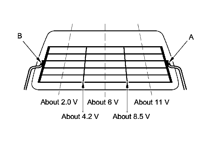 - If the voltage is not as specified, repair the defogger wire.