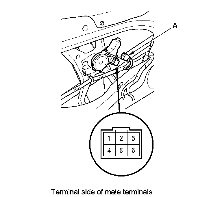 2. Disconnect the 6P connector (A) from the driver's power window motor.