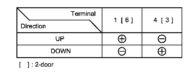 - Connect an analog voltmeter between terminals No. 3 [No. 4] (+) and No. 5 [No. 2] (-), and run the window motor down or up. The voltmeter needle should move back and forth alternately between 0 V and about 5 V (a digital voltmeter reads about 2.5 V).