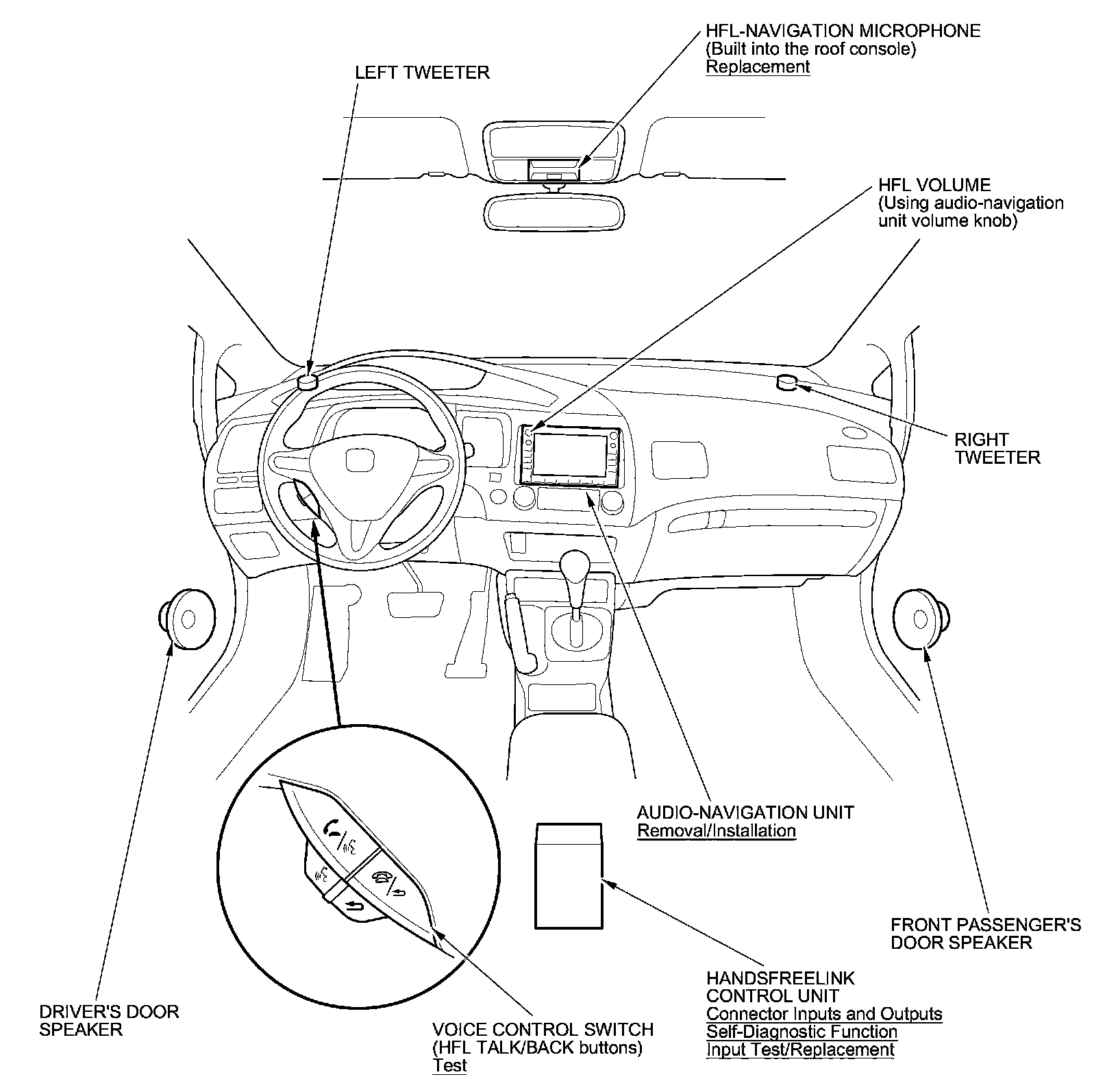 HandsFreeLink System Component Location Index (With Navigation)