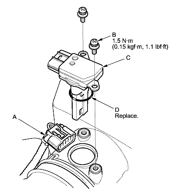 4. Install the parts in the reverse order of removal with a new O-ring (D).